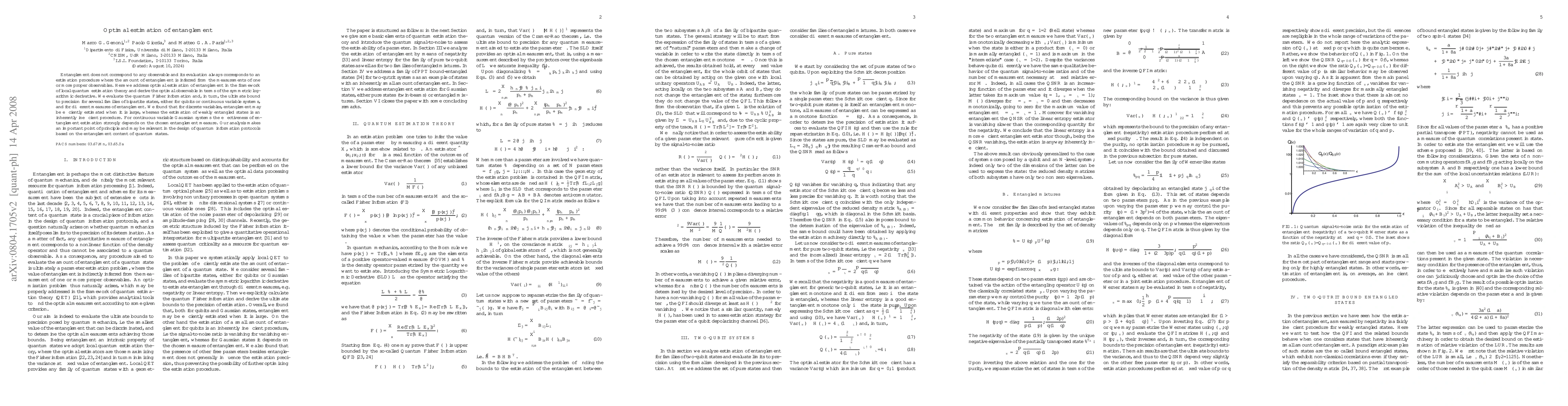 This paper explores optimal estimation methods for quantifying entanglement in quantum systems, deriving the best observable for this purpose and evaluating the quantum Fisher information. It finds that while large entanglement can be efficiently estimated, weak entanglement is inherently difficult to measure, with continuous variable systems' estimation effectiveness varying based on the chosen entanglement measure.