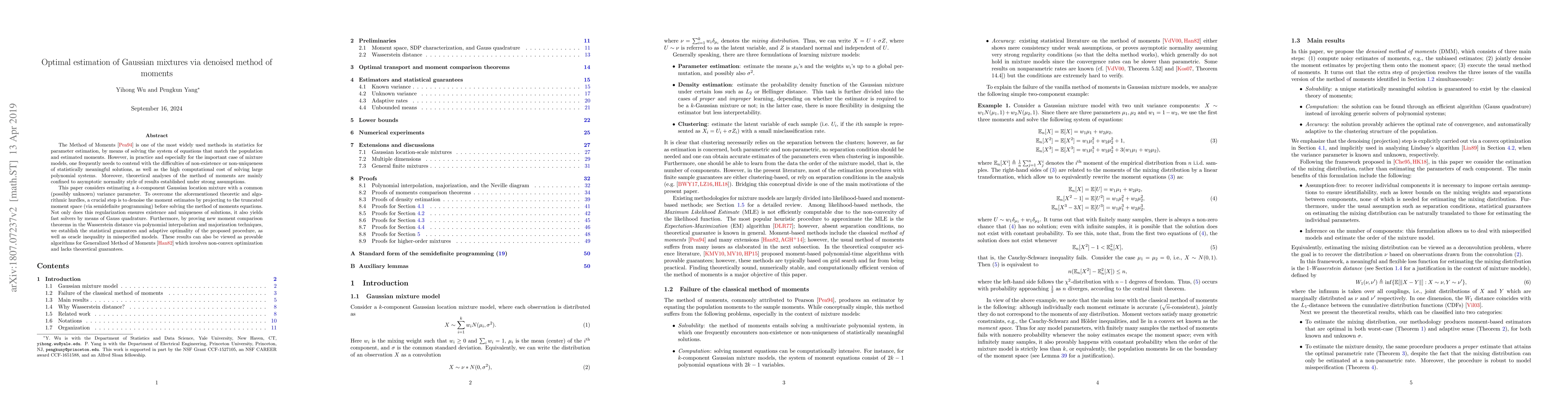 Researchers developed a method to estimate Gaussian mixture models with common variance parameter, addressing uniqueness and computational issues of traditional methods, and establishing statistical guarantees through denoising and moment comparison theorems.