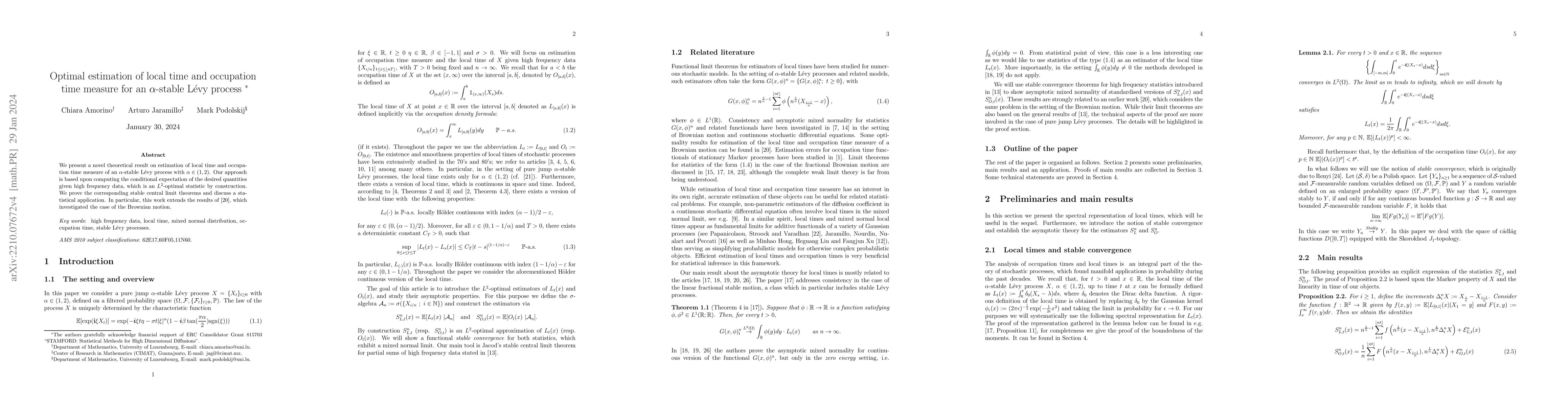 This paper introduces a method for optimally estimating local time and occupation time measures for an α-stable Lévy process (1 < α < 2) using high-frequency data. The proposed approach yields an L^2-optimal statistic and is supported by stable central limit theorems, extending previous results for Brownian motion.