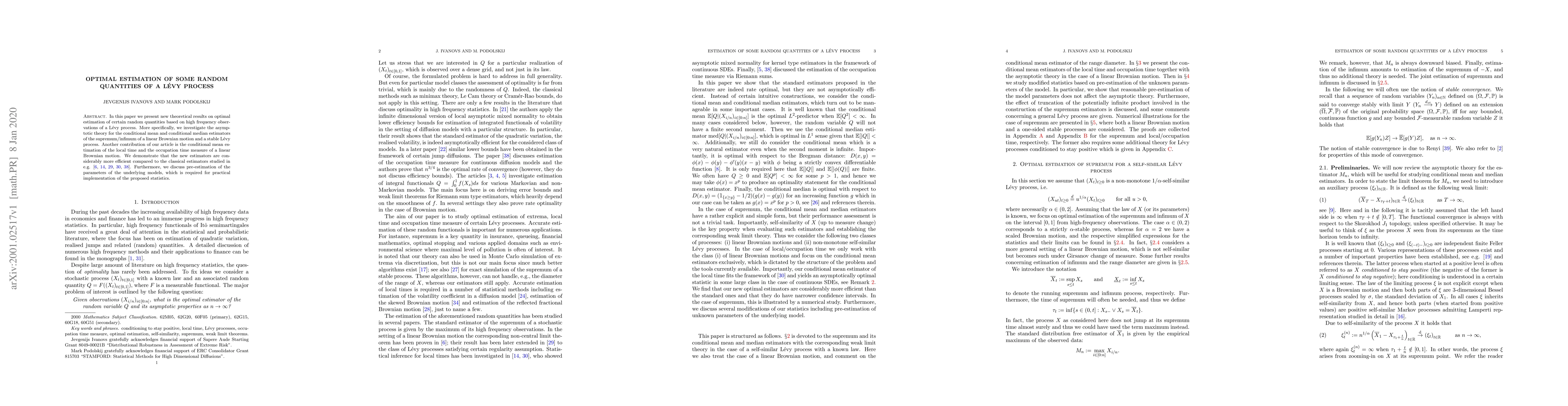In this paper we present new theoretical results on optimal estimation of certain random quantities based on high frequency observations of a L\'evy process. More specifically, we investigate the asymptotic theory for the conditional mean and conditional median estimators of the supremum/infimum of a linear Brownian motion and a stable L\'evy process. Another contribution of our article is the conditional mean estimation of the local time and the occupation time measure of a linear Brownian motion. We demonstrate that the new estimators are considerably more efficient compared to the classical estimators. Furthermore, we discuss pre-estimation of the parameters of the underlying models, which is required for practical implementation of the proposed statistics.