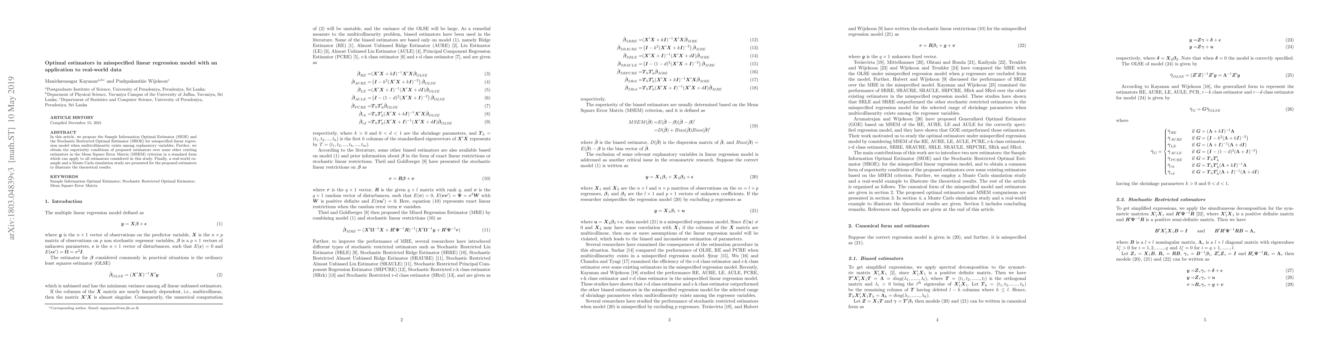 This paper introduces the Sample Information Optimal Estimator (SIOE) and the Stochastic Restricted Optimal Estimator (SROE) for misspecified linear regression models with multicollinearity. The authors demonstrate the superiority of these new estimators over existing ones based on Mean Square Error Matrix criteria and validate their findings through real-world data and a Monte Carlo simulation.