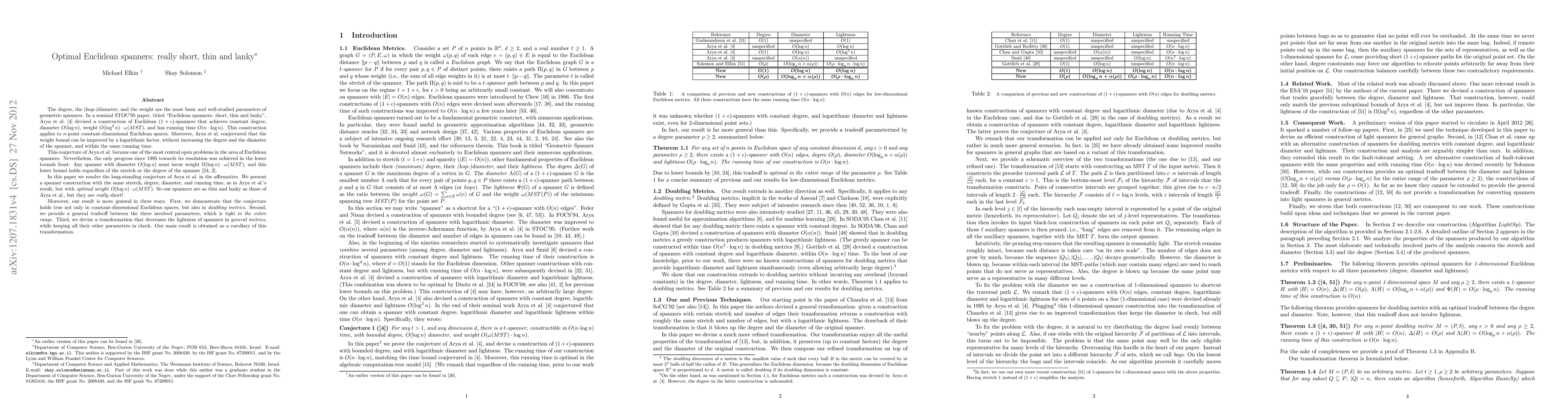 Researchers have resolved an open problem in Euclidean spanners by creating a new construction that achieves optimal weight while maintaining the same degree, diameter, and running time as previous results, making it applicable to constant-dimensional spaces and doubling metrics.
