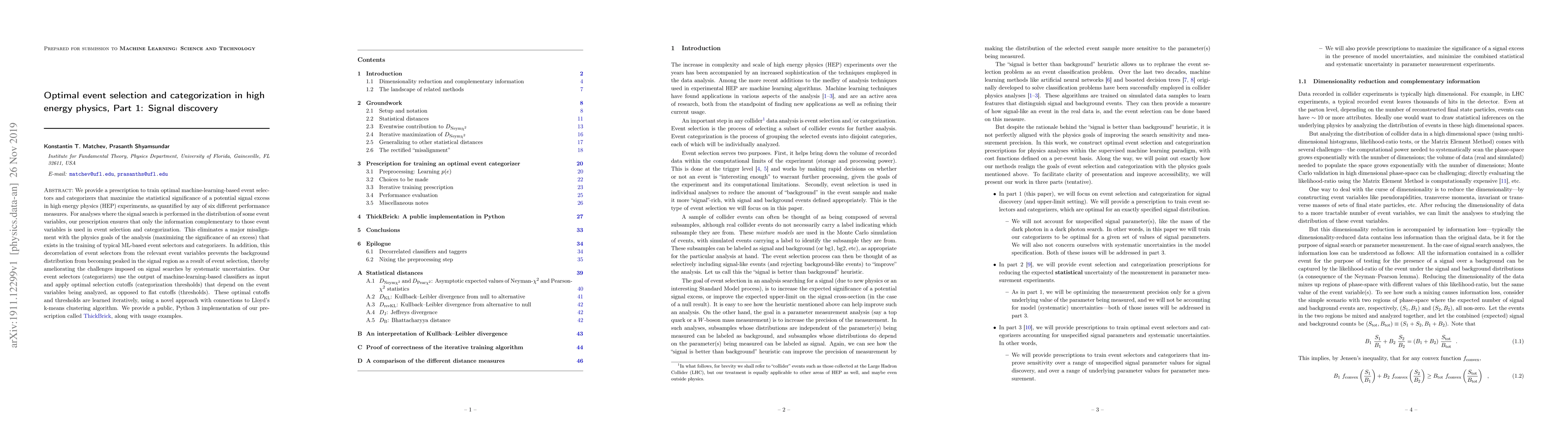 This paper presents a method to train machine-learning-based event selectors and categorizers that maximize signal discovery significance in high energy physics, using optimal selection cutoffs and categorization thresholds. The approach decouples event selectors from relevant variables, reducing systematic uncertainties and improving analysis accuracy.