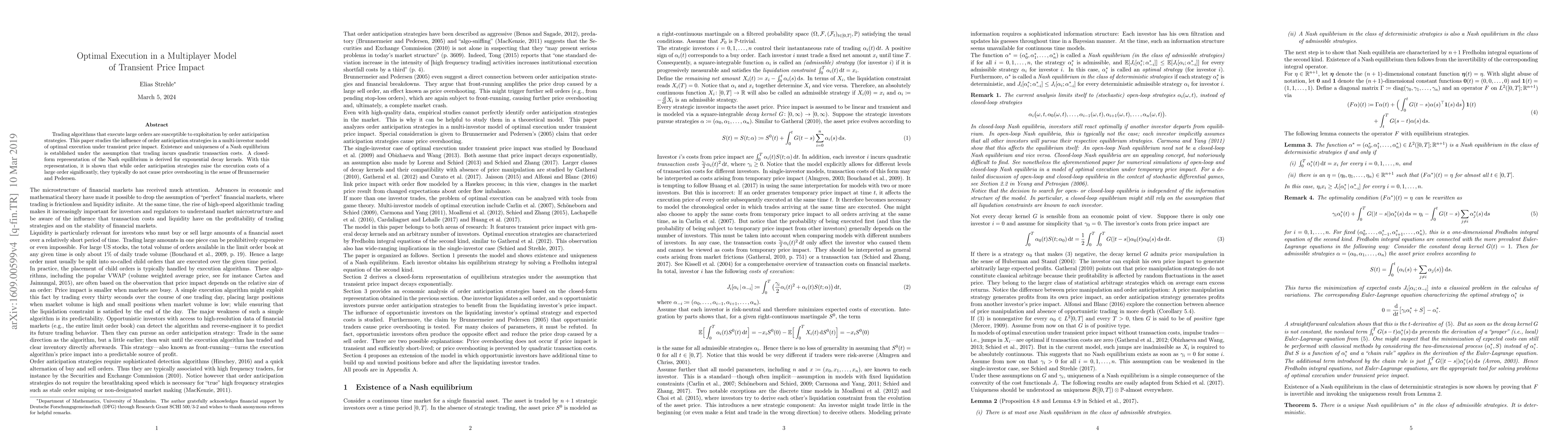 This paper explores optimal execution strategies in a multi-investor model where large orders face transient price impact and order anticipation. It establishes the existence of a Nash equilibrium under quadratic transaction costs and provides a closed-form solution for exponential decay kernels, demonstrating that while anticipation strategies increase execution costs, they do not lead to price overshooting.