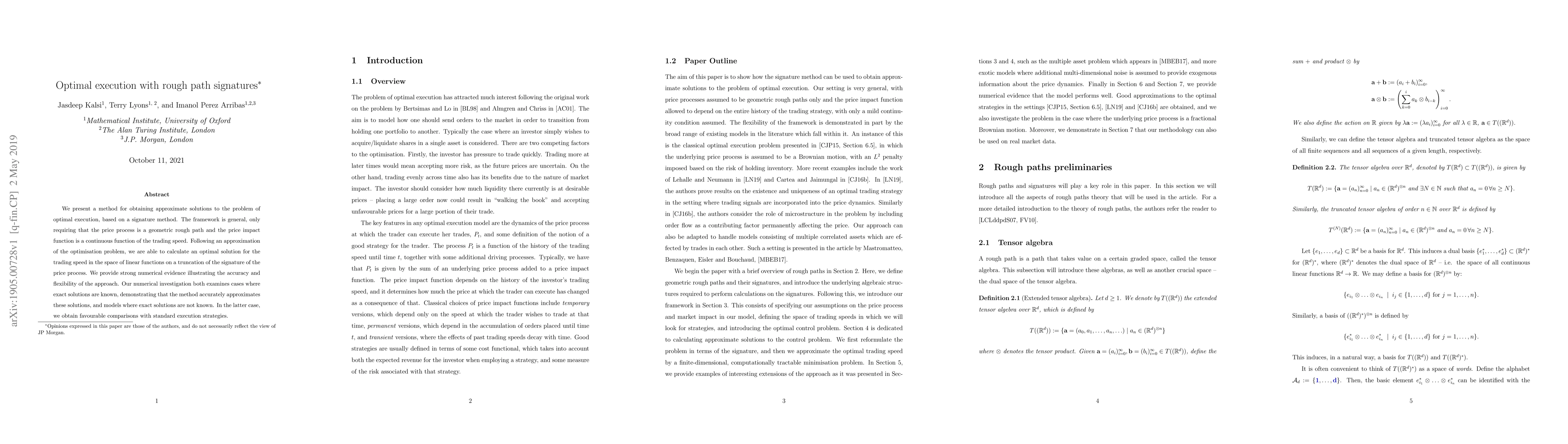 A new method uses rough path signatures to approximate optimal trading execution plans with high accuracy, even in complex models where exact solutions are unknown.