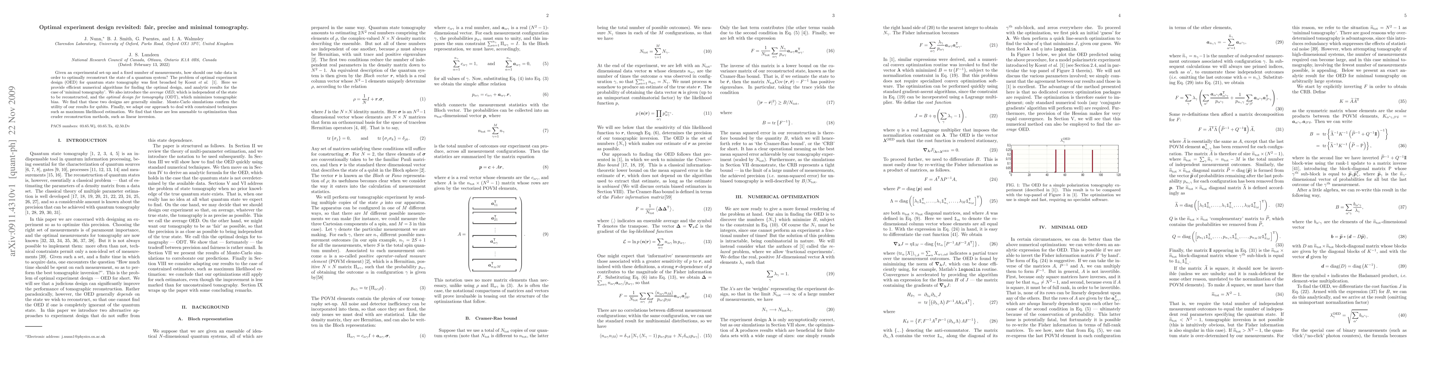 This paper presents efficient algorithms for optimal experiment design in quantum state tomography, focusing on achieving fair, precise, and minimal measurement strategies. It introduces the average optimal experiment design and optimal design for tomography, showing their similarity and validating the results through Monte-Carlo simulations for qubits.