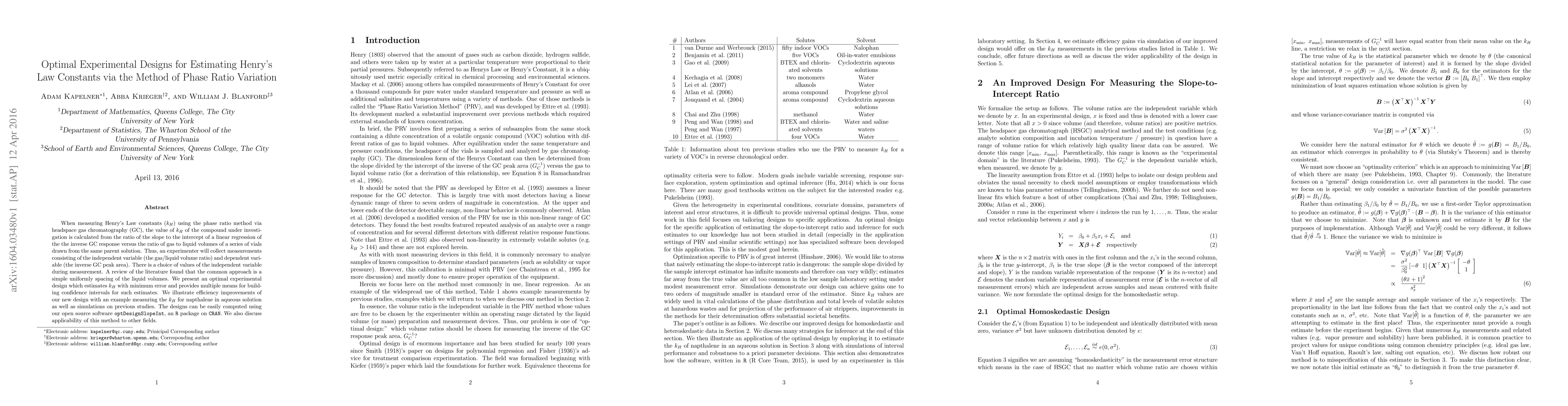 A new experimental design is presented to estimate Henry's Law constants with minimum error, improving efficiency in gas chromatography measurements, and providing methods for building confidence intervals.