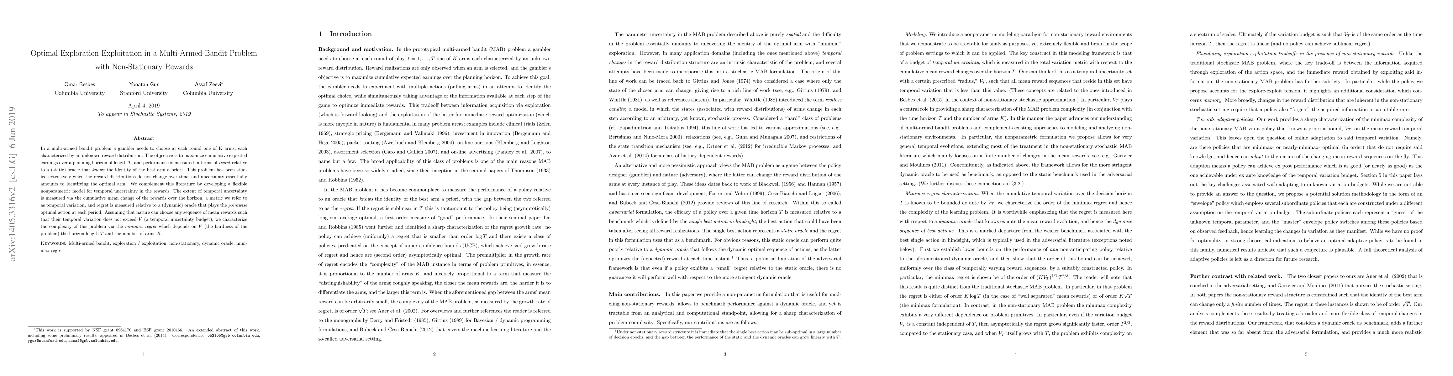 Researchers analyzed a multi-armed bandit problem with non-stationary rewards to understand how much exploration-exploitation trade-off can be optimized over time. They found that the extent of allowed reward variation directly affects the minimal achievable regret.