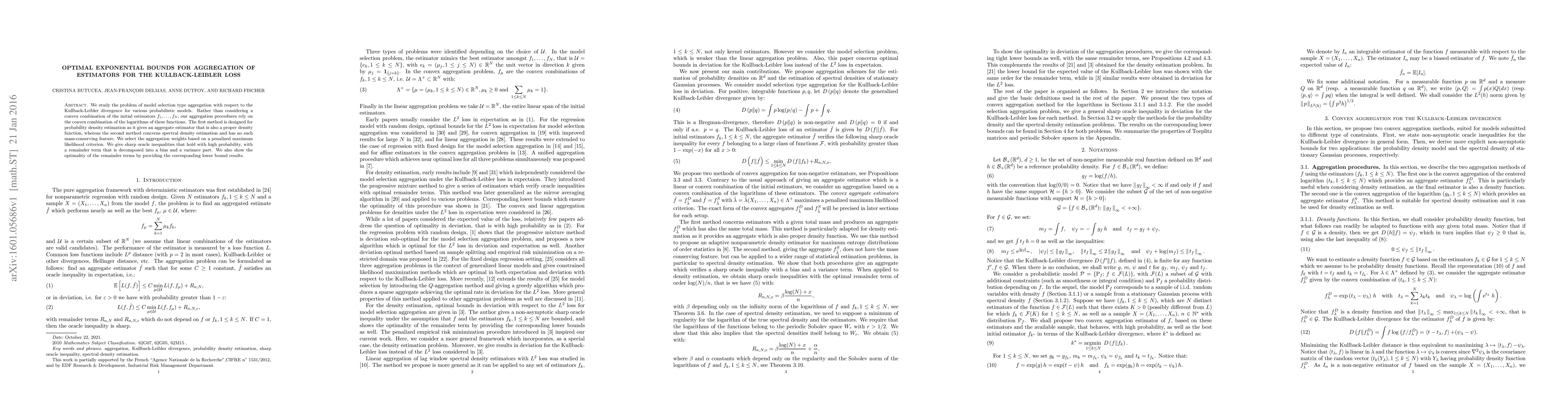 This paper proposes aggregation methods for probabilistic models using Kullback-Leibler divergence, focusing on convex combinations of logarithmic estimators rather than linear combinations. The methods yield proper density estimators for probability density and provide optimal bounds for the remainder terms, demonstrating their optimality through lower bound results.