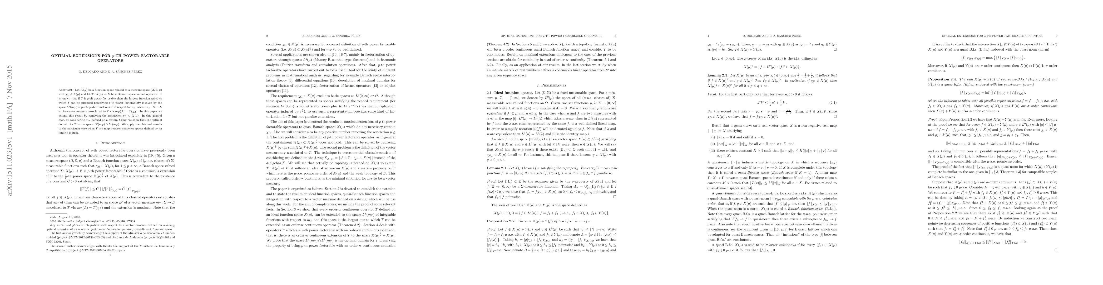 The research paper extends the result on $p$-th power factorability of operators to a broader class of function spaces without the restriction that $rac{ ext{function}}{ ext{measurespace}} i X( ext{mu})$, finding the optimal domain for the operator as $L^p(m_T) cap L^1(m_T)$.