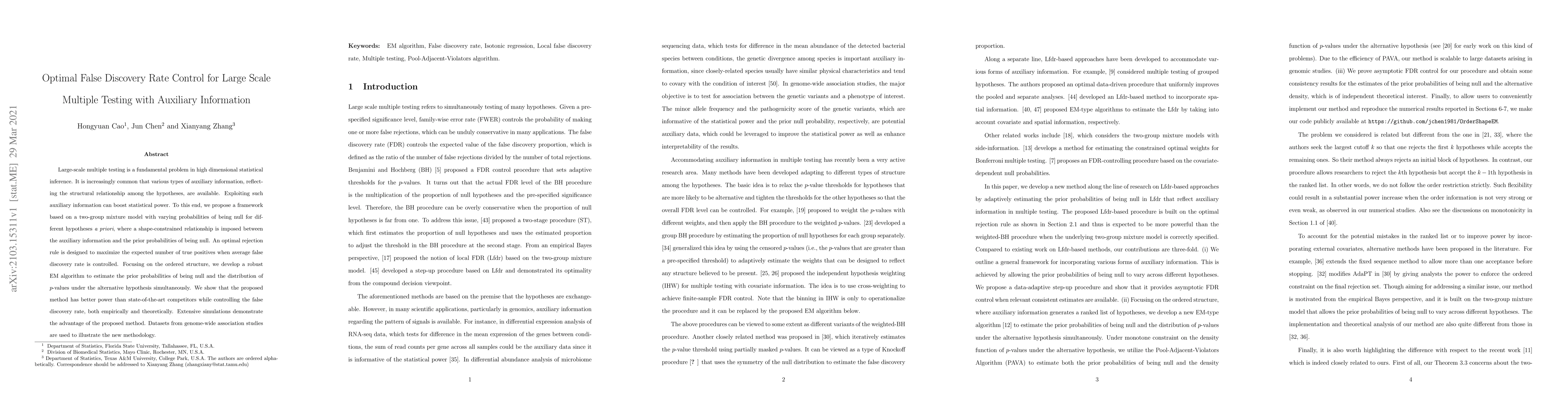 This paper proposes a framework for controlling the false discovery rate in large-scale multiple testing by leveraging auxiliary information. It introduces a two-group mixture model with shape-constrained relationships and develops a robust EM algorithm to estimate parameters, achieving better power than existing methods while maintaining control over the false discovery rate.