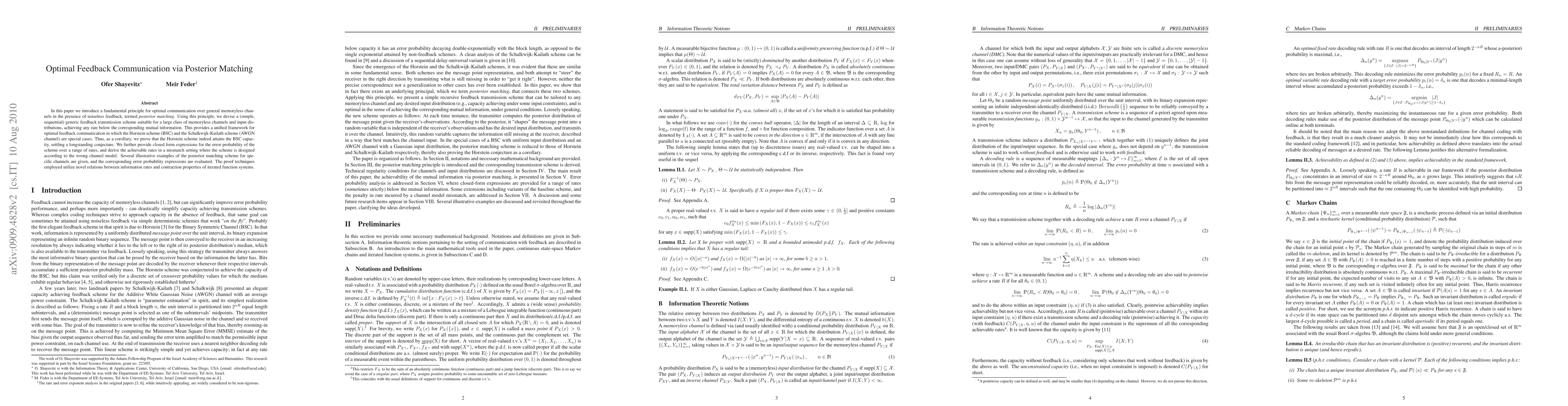 Researchers introduce a new principle called posterior matching for optimal communication over noisy channels with feedback, achieving rates below mutual information and settling a longstanding conjecture. The scheme provides a unified framework for various channel types and is proven to attain the capacity of certain channels.