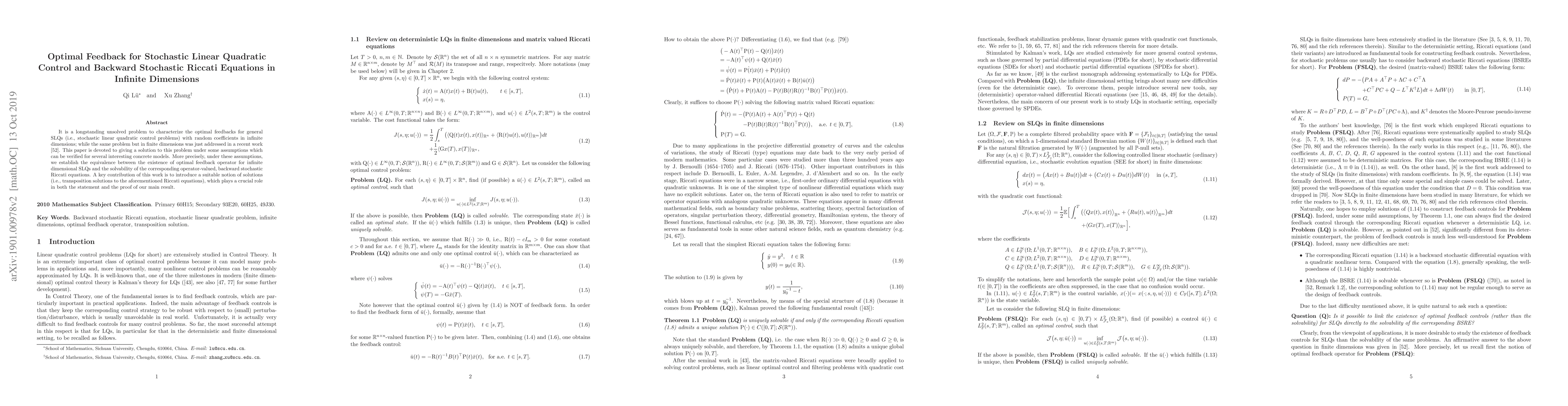 This paper addresses the optimal feedback for stochastic linear quadratic control problems in infinite dimensions, establishing an equivalence between optimal feedback operators and the solvability of operator-valued backward stochastic Riccati equations under certain assumptions. A novel notion of Riccati equation solutions is introduced, which is pivotal for both the theorem's statement and proof.