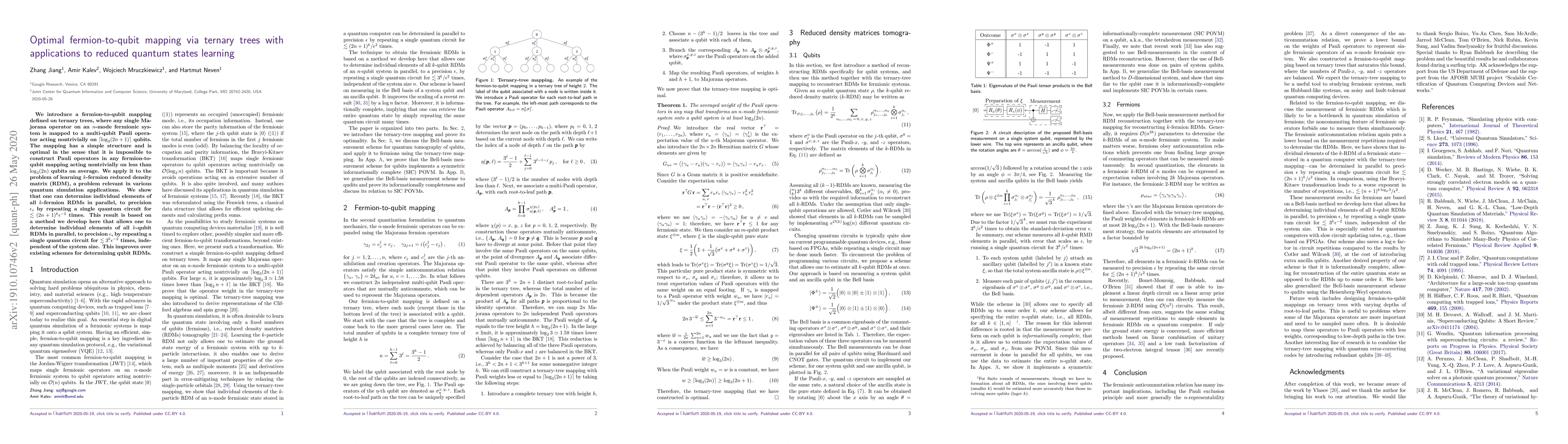 Researchers develop a new method for mapping fermions to qubits using ternary trees, enabling efficient learning of reduced quantum states with improved accuracy and scalability.