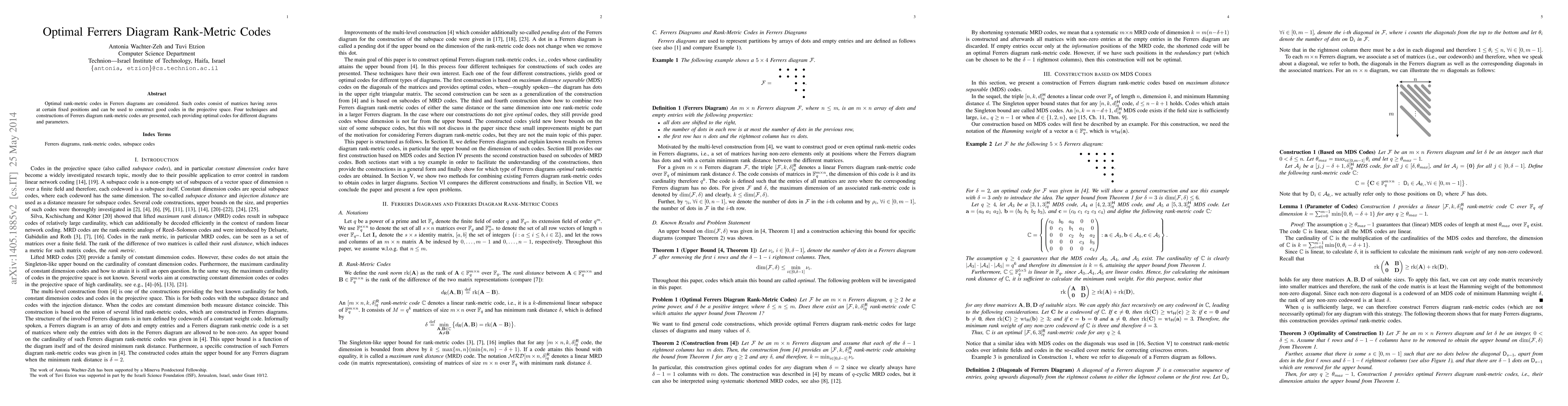 This paper explores optimal rank-metric codes within Ferrers diagrams, presenting four distinct techniques that yield optimal codes for various diagram configurations and parameters, useful for constructing effective codes in projective space.