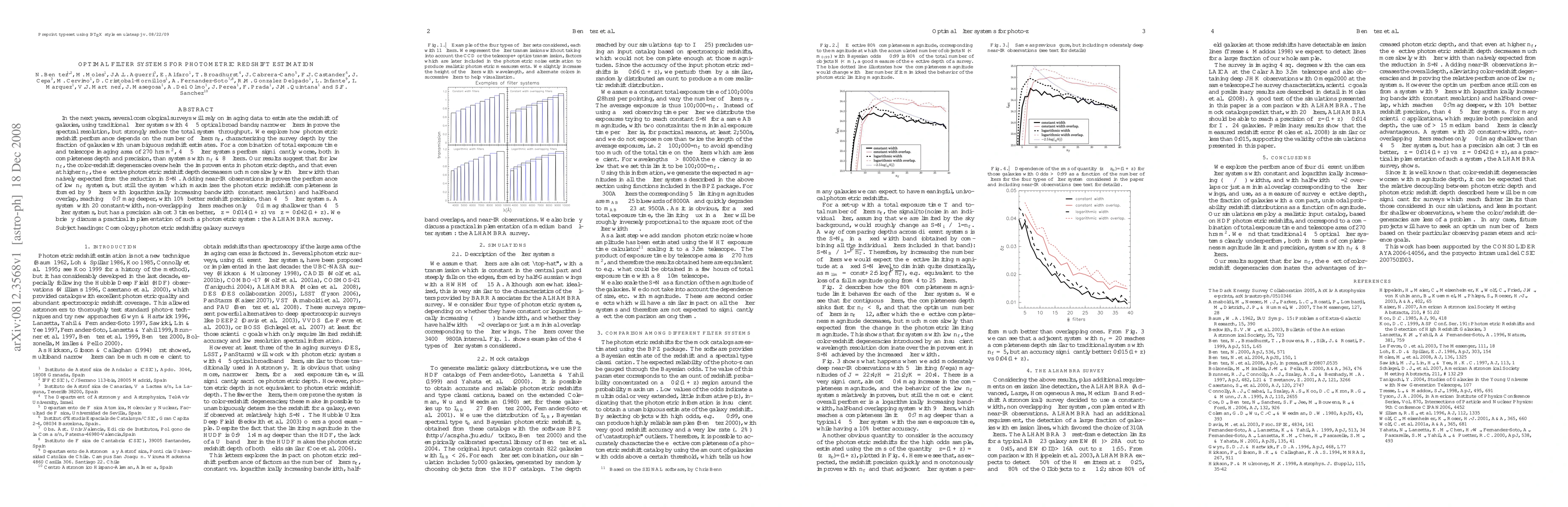 This paper investigates optimal filter systems for estimating photometric redshifts, finding that systems with 8 or more filters significantly outperform traditional 4-5 filter systems in both completeness and precision. A 9-filter system with logarithmically increasing bandwidth maximizes completeness, achieving deeper redshift estimates and better precision compared to fewer filters.