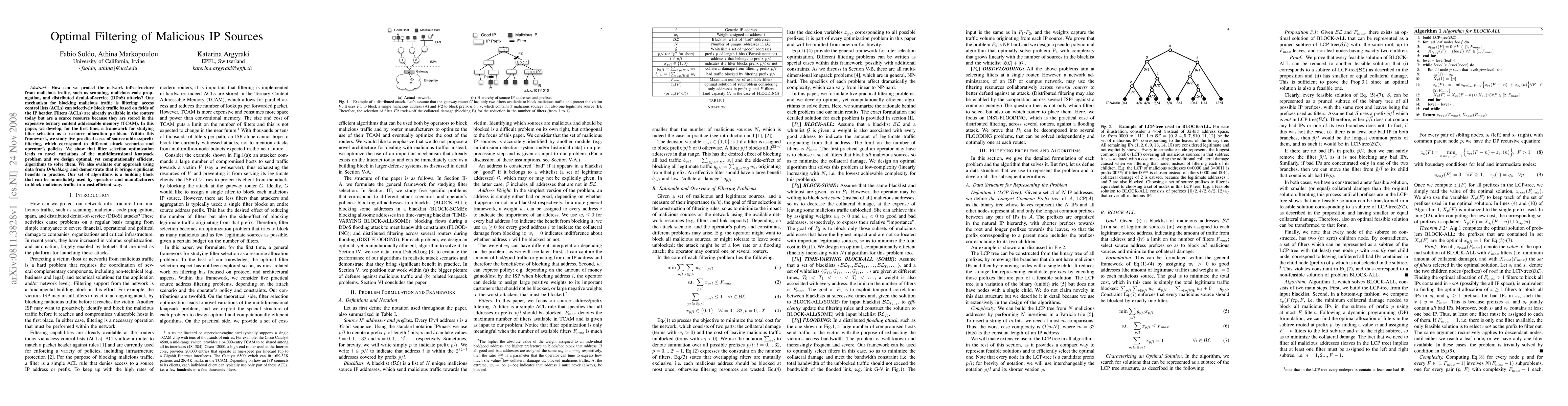This paper proposes a framework for optimizing the selection of access control lists (ACLs) to block malicious IP traffic, framing it as a resource allocation problem. The authors develop efficient algorithms to solve variations of the multidimensional knapsack problem, demonstrating significant practical benefits using real-world data.