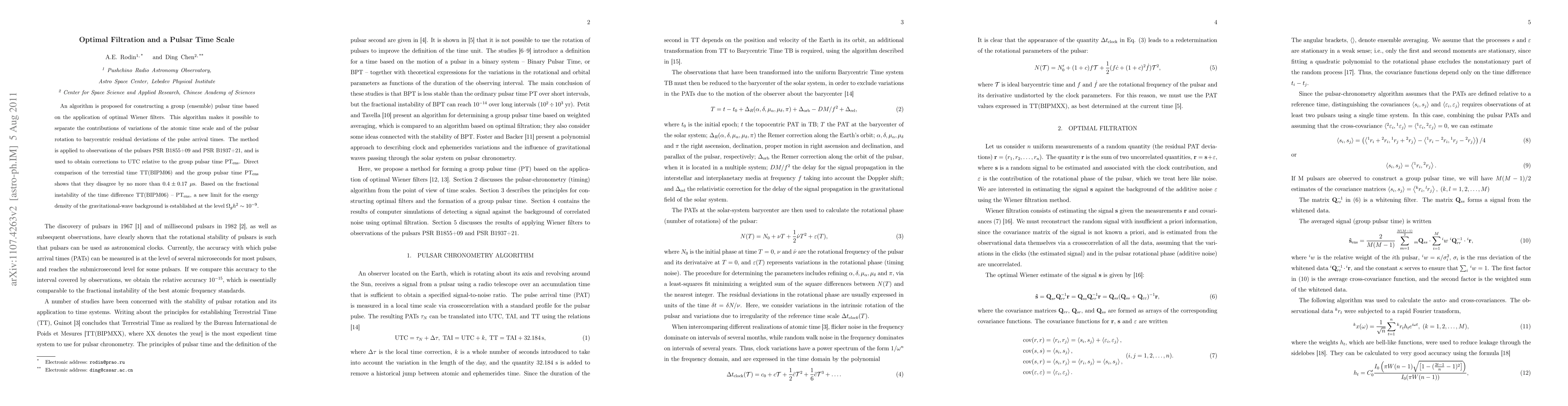 Researchers develop an algorithm to separate pulsar time variations from atomic time scale fluctuations, achieving corrections of $0.4 ext{ } ext{\mu s}$ to UTC, and establish a limit on the gravitational-wave background energy density.