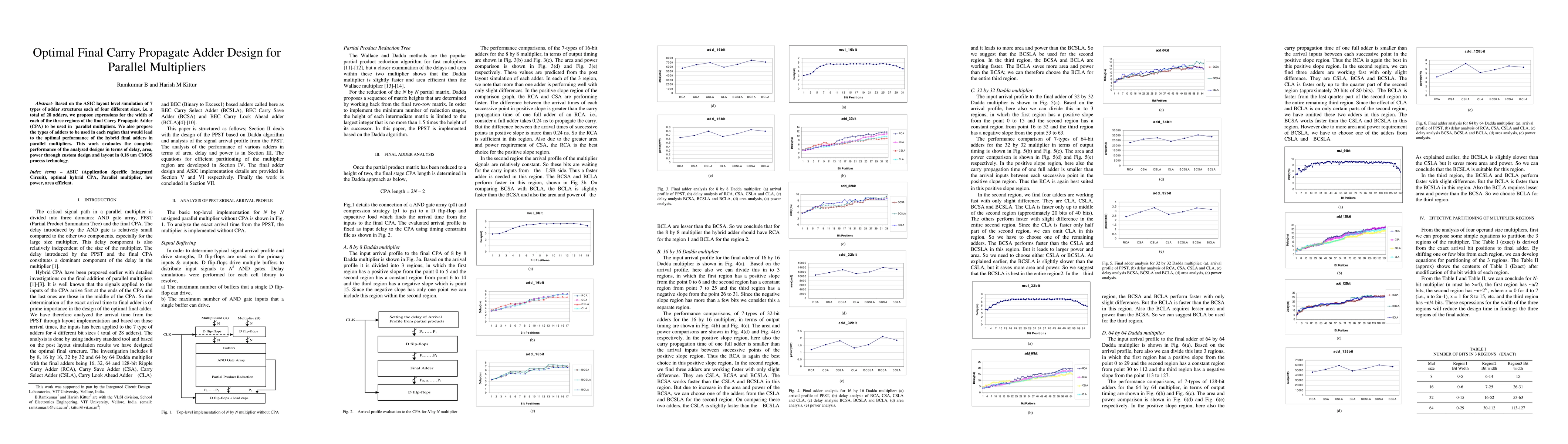 This paper proposes optimized expressions for the width of three regions in a final Carry Propagate Adder (CPA) for parallel multipliers, based on simulations of 28 adder structures. It identifies the best adder types for each region to achieve optimal performance in terms of delay, area, and power.