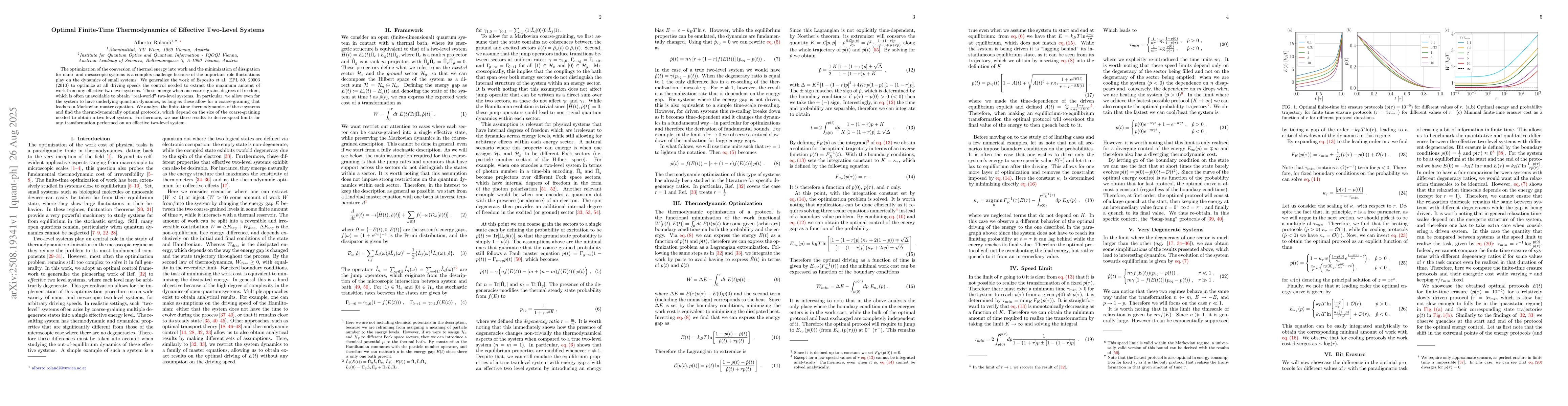 The optimization of the conversion of thermal energy into work and the minimization of dissipation for nano- and mesoscopic systems is a complex challenge because of the important role fluctuations play on the dynamics of small systems. We generalize the work of Esposito et al. EPL 89, 20003 (2010) to optimize at all driving speeds the control needed to extract the maximum amount of work from any effective two-level systems. These emerge when one coarse-grains degrees of freedom, which is often unavoidable to obtain "real-world" two-level systems. In particular, we allow even for the system to have underlying quantum dynamics, as long as these allow for a coarse-graining that leads to a Markovian master equation. We analyze the finite-time thermodynamics of these systems and find the thermodynamically optimal protocols, which depend on the size of the coarse-graining needed to obtain a two-level system. Furthermore, we use these results to derive speed-limits for any transformation performed on an effective two-level system.
