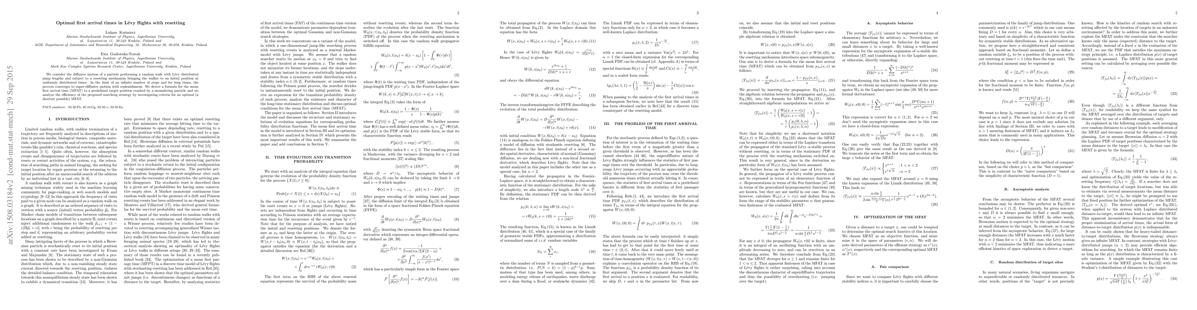 We consider diffusive motion of a particle performing a random walk with L\'evy distributed jump lengths and subject to resetting mechanism bringing the walker to an initial position at uniformly distributed times. In the limit of infinite number of steps and for long times, the process converges to a super-diffusive motion with replenishment. We derive formula for a mean first arrival time (MFAT) to a predefined target position reached by a meandering particle and analyze efficiency of the proposed searching strategy by investigating criteria for an optimal (a shortest possible) MFAT.