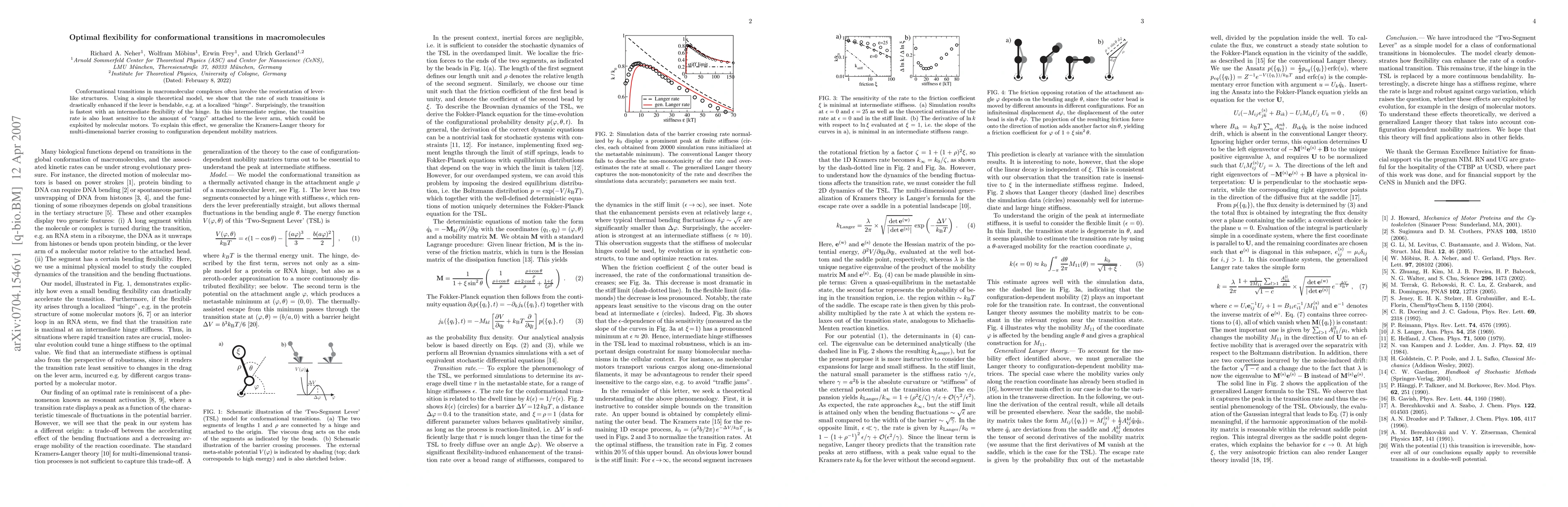 Conformational transitions in macromolecular complexes often involve the reorientation of lever-like structures. Using a simple theoretical model, we show that the rate of such transitions is drastically enhanced if the lever is bendable, e.g. at a localized "hinge''. Surprisingly, the transition is fastest with an intermediate flexibility of the hinge. In this intermediate regime, the transition rate is also least sensitive to the amount of "cargo'' attached to the lever arm, which could be exploited by molecular motors. To explain this effect, we generalize the Kramers-Langer theory for multi-dimensional barrier crossing to configuration dependent mobility matrices.