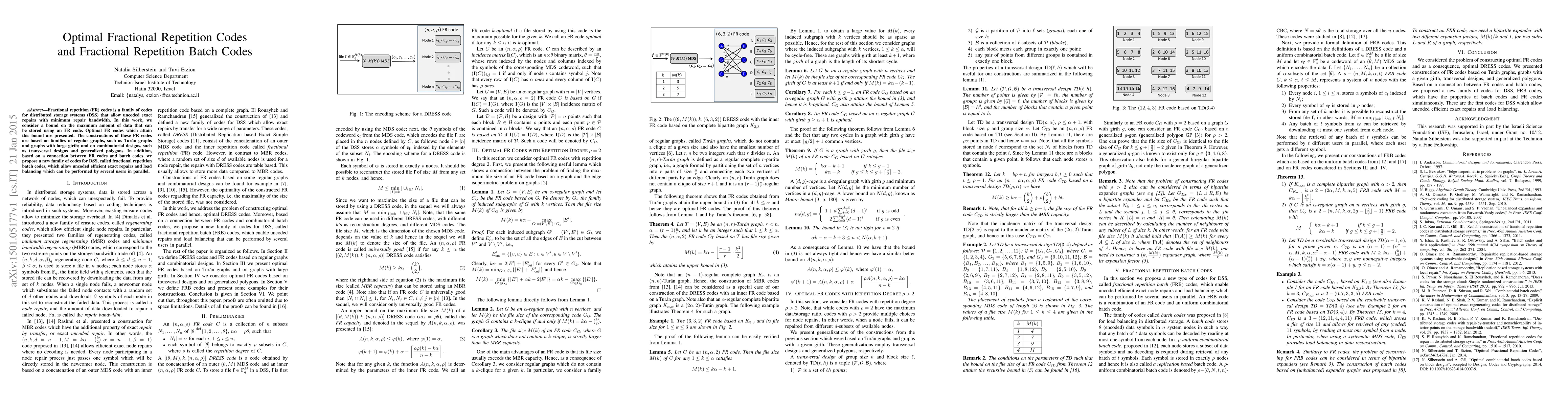 This paper presents optimal fractional repetition codes for distributed storage systems that enable uncoded exact repairs with minimal repair bandwidth. It also introduces fractional repetition batch codes, which allow efficient parallel repairs and load balancing by multiple users, leveraging regular graphs and combinatorial designs.