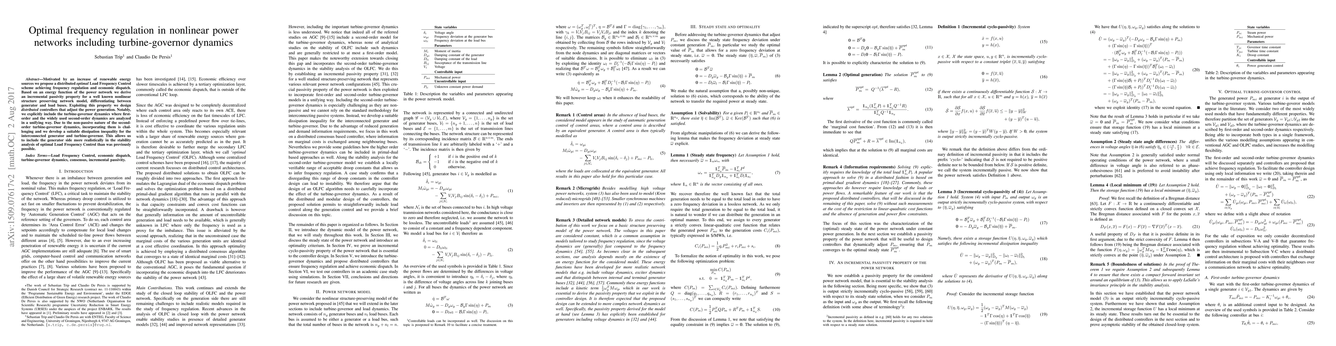 Motivated by an increase of renewable energy sources we propose a distributed optimal Load Frequency Control scheme achieving frequency regulation and economic dispatch. Based on an energy function of the power network we derive an incremental passivity property for a well known nonlinear structure preserving network model, differentiating between generator and load buses. Exploiting this property we design distributed controllers that adjust the power generation. Notably, we explicitly include the turbine-governor dynamics where first-order and the widely used second-order dynamics are analyzed in a unifying way. Due to the non-passive nature of the second-order turbine-governor dynamics, incorporating them is challenging and we develop a suitable dissipation inequality for the interconnected generator and turbine-governor. This allows us to include the generator side more realistically in the stability analysis of optimal Load Frequency Control than was previously possible.
