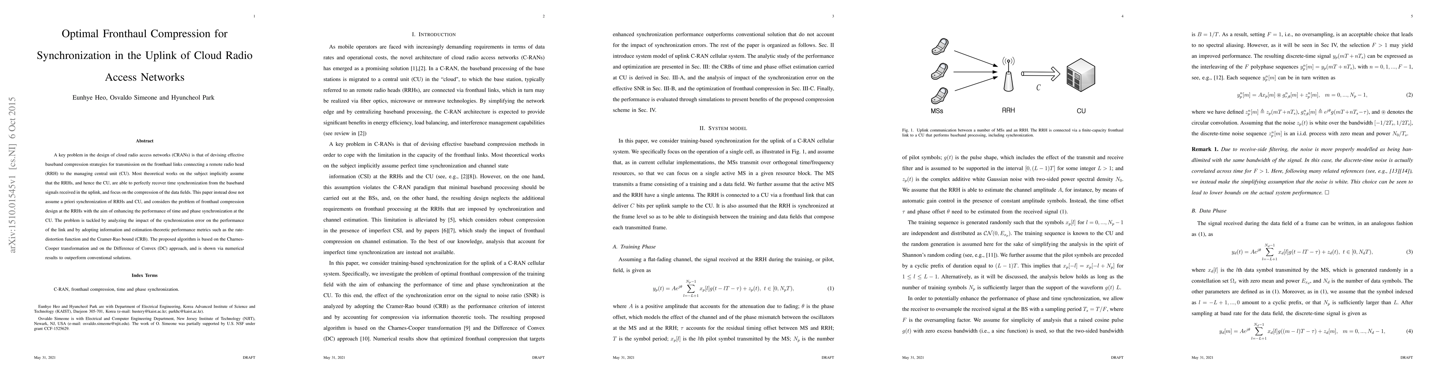 This paper addresses the challenge of fronthaul compression in cloud radio access networks (CRANs) with a focus on improving time and phase synchronization. It proposes an algorithm based on the Charnes-Cooper transformation and the Difference of Convex approach, demonstrating superior performance over conventional methods through numerical results.