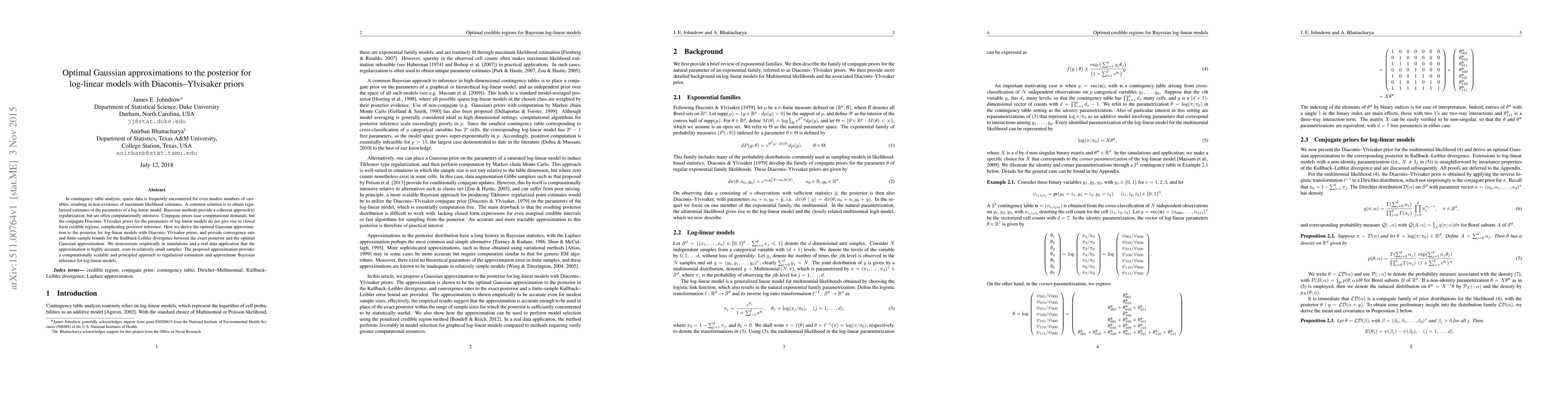 This paper develops an optimal Gaussian approximation to the posterior for log-linear models with Diaconis-Ylvisaker priors, addressing computational challenges in sparse data scenarios. The proposed method provides accurate approximations with convergence rate and finite-sample bounds, demonstrating scalability and effectiveness in both simulations and real-world applications.