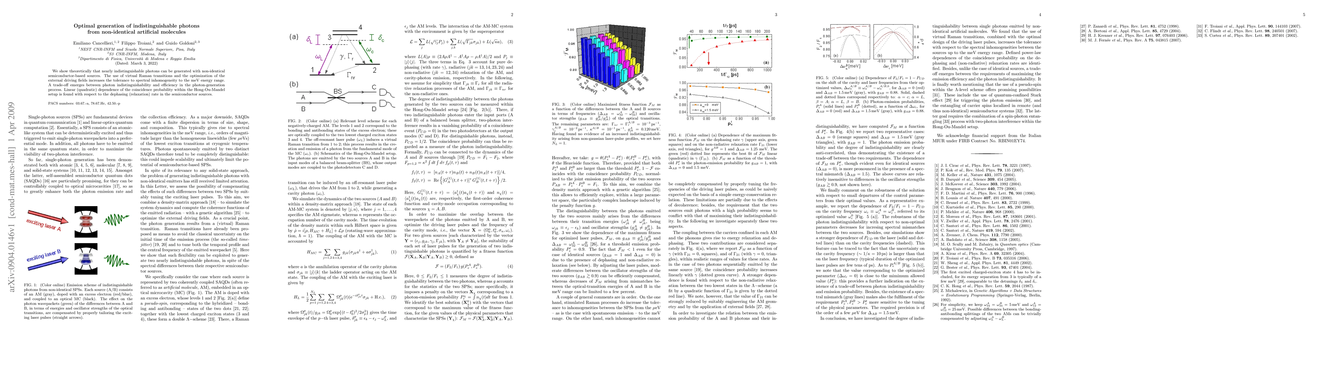 This research demonstrates the theoretical possibility of generating nearly indistinguishable photons using non-identical semiconductor-based sources, by optimizing external driving fields and tolerating spectral inhomogeneity up to the meV range. A trade-off between photon indistinguishability and efficiency is identified, with dephasing and relaxation rates influencing coincidence probability in Hong-Ou-Mandel setup.