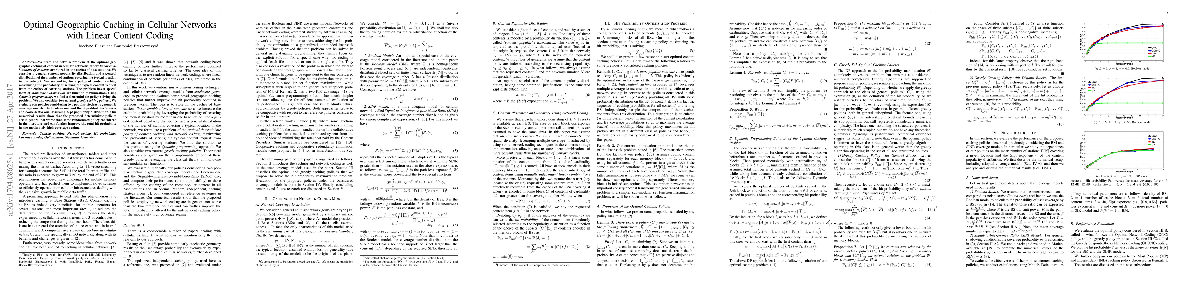 Researchers developed an optimal caching policy for cellular networks to maximize content availability, outperforming greedy policies in moderately high coverage regimes.