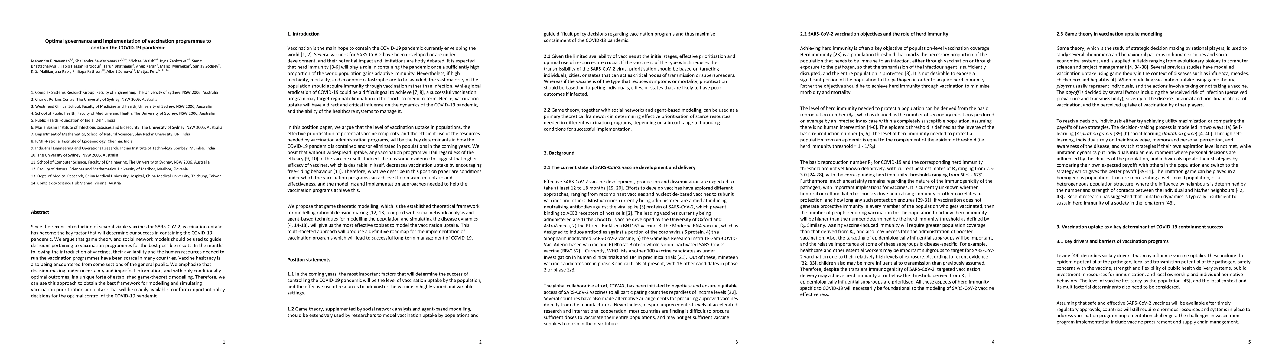 Since the recent introduction of several viable vaccines for SARS-CoV-2, vaccination uptake has become the key factor that will determine our success in containing the COVID-19 pandemic. We argue that game theory and social network models should be used to guide decisions pertaining to vaccination programmes for the best possible results. In the months following the introduction of vaccines, their availability and the human resources needed to run the vaccination programmes have been scarce in many countries. Vaccine hesitancy is also being encountered from some sections of the general public. We emphasize that decision-making under uncertainty and imperfect information, and with only conditionally optimal outcomes, is a unique forte of established game-theoretic modelling. Therefore, we can use this approach to obtain the best framework for modelling and simulating vaccination prioritization and uptake that will be readily available to inform important policy decisions for the optimal control of the COVID-19 pandemic.