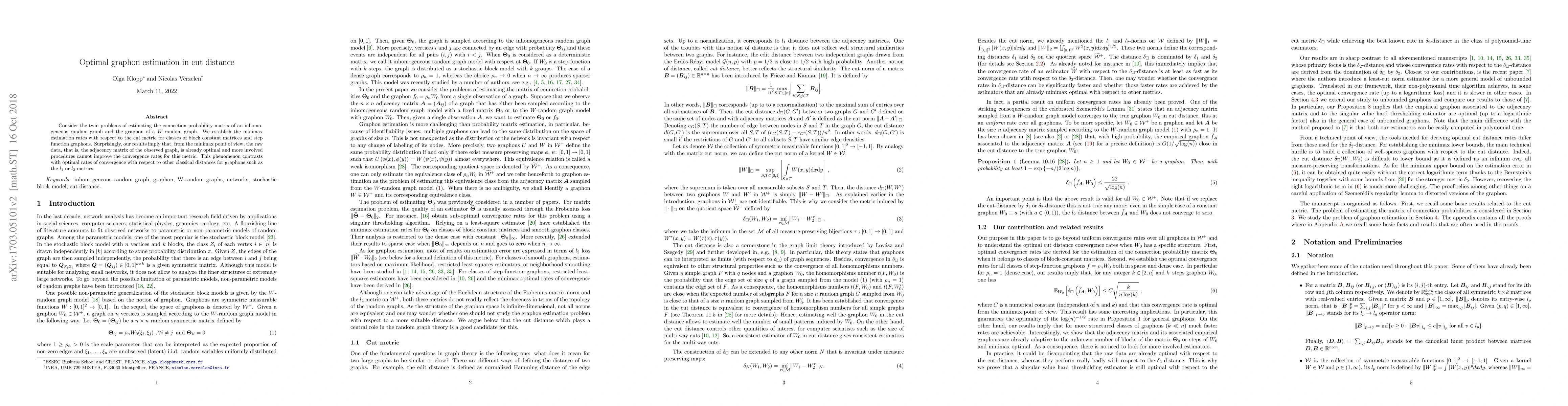 This paper investigates optimal estimation rates for the connection probability matrix of inhomogeneous random graphs and graphons of W-random graphs, establishing minimax rates for block constant matrices and step function graphons in the cut metric. It finds that, surprisingly, the adjacency matrix of the observed graph is optimal for this metric, unlike in other classical distances.