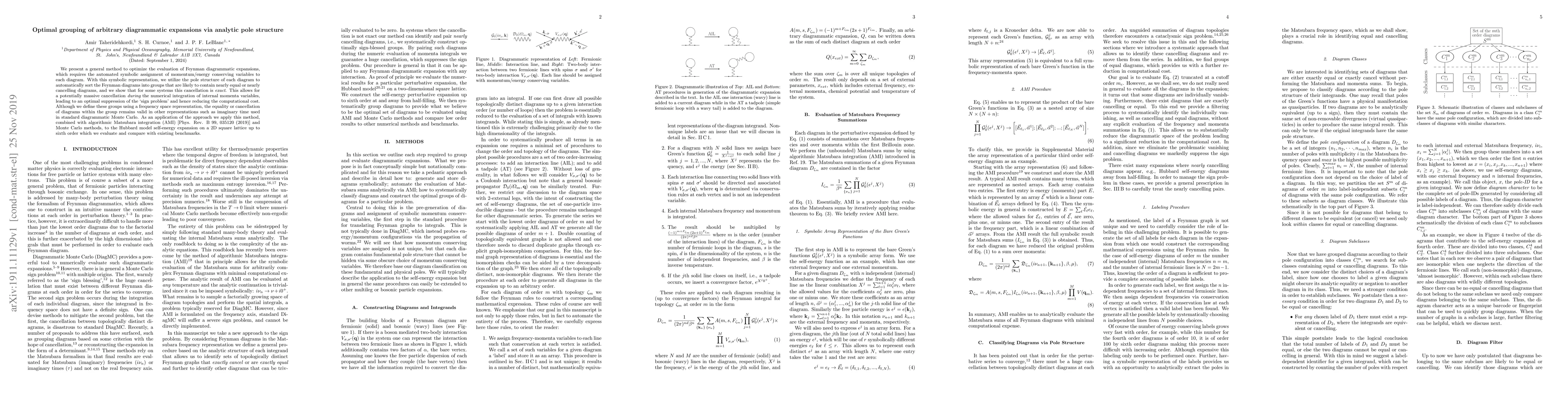 We present a general method to optimize the evaluation of Feynman diagrammatic expansions, which requires the automated symbolic assignment of momentum/energy conserving variables to each diagram. With this symbolic representation, we utilize the pole structure of each diagram to automatically sort the Feynman diagrams into groups that are likely to contain nearly equal or nearly cancelling diagrams, and we show that for some systems this cancellation is exact. This allows for a potentially massive cancellation during the numerical integration of internal momenta variables, leading to an optimal suppression of the `sign problem' and hence reducing the computational cost. Although we define these groups using a frequency space representation, the equality or cancellation of diagrams within the group remains valid in other representations such as imaginary time used in standard diagrammatic Monte Carlo. As an application of the approach we apply this method, combined with algorithmic Matsubara integration (AMI) [Phys. Rev. B 99, 035120 (2019)] and Monte Carlo methods, to the Hubbard model self-energy expansion on a 2D square lattice up to sixth order which we evaluate and compare with existing benchmarks.