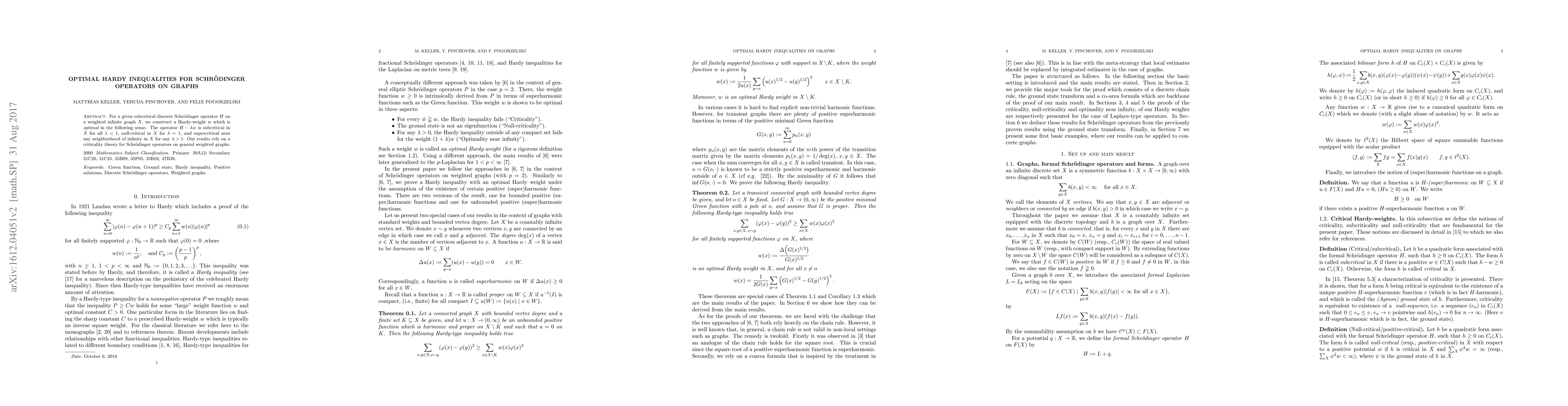 The paper constructs an optimal Hardy-weight for a subcritical discrete Schrödinger operator on a weighted infinite graph, ensuring the operator's criticality properties for various values of a parameter λ. The results are based on a novel criticality theory for such operators on general weighted graphs.