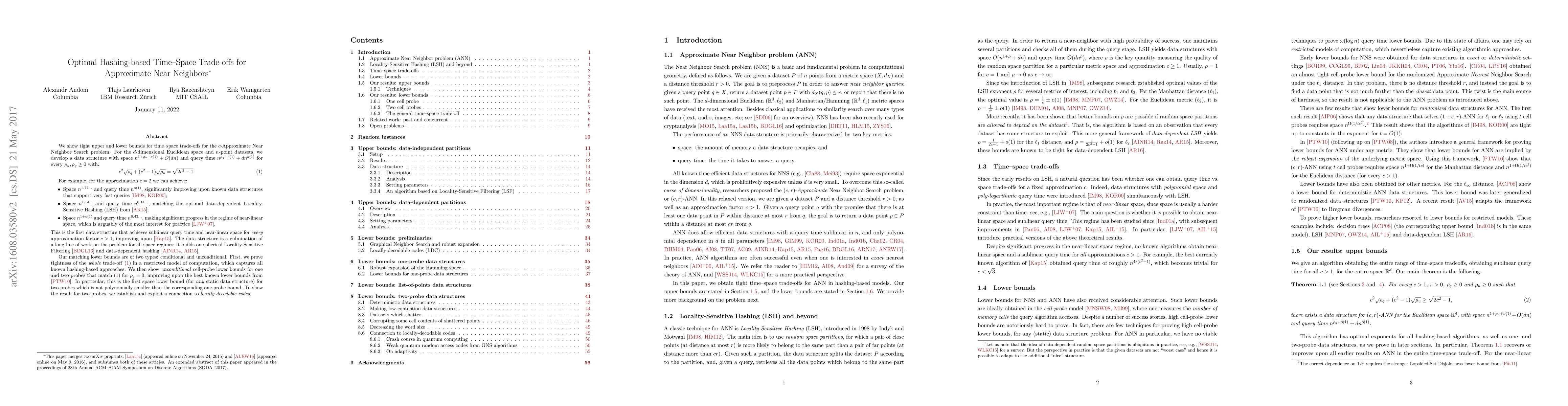 [See the paper for the full abstract.] We show tight upper and lower bounds for time-space trade-offs for the $c$-Approximate Near Neighbor Search problem. For the $d$-dimensional Euclidean space and $n$-point datasets, we develop a data structure with space $n^{1 + \rho_u + o(1)} + O(dn)$ and query time $n^{\rho_q + o(1)} + d n^{o(1)}$ for every $\rho_u, \rho_q \geq 0$ such that: \begin{equation} c^2 \sqrt{\rho_q} + (c^2 - 1) \sqrt{\rho_u} = \sqrt{2c^2 - 1}. \end{equation} This is the first data structure that achieves sublinear query time and near-linear space for every approximation factor $c > 1$, improving upon [Kapralov, PODS 2015]. The data structure is a culmination of a long line of work on the problem for all space regimes; it builds on Spherical Locality-Sensitive Filtering [Becker, Ducas, Gama, Laarhoven, SODA 2016] and data-dependent hashing [Andoni, Indyk, Nguyen, Razenshteyn, SODA 2014] [Andoni, Razenshteyn, STOC 2015]. Our matching lower bounds are of two types: conditional and unconditional. First, we prove tightness of the whole above trade-off in a restricted model of computation, which captures all known hashing-based approaches. We then show unconditional cell-probe lower bounds for one and two probes that match the above trade-off for $\rho_q = 0$, improving upon the best known lower bounds from [Panigrahy, Talwar, Wieder, FOCS 2010]. In particular, this is the first space lower bound (for any static data structure) for two probes which is not polynomially smaller than the one-probe bound. To show the result for two probes, we establish and exploit a connection to locally-decodable codes.
