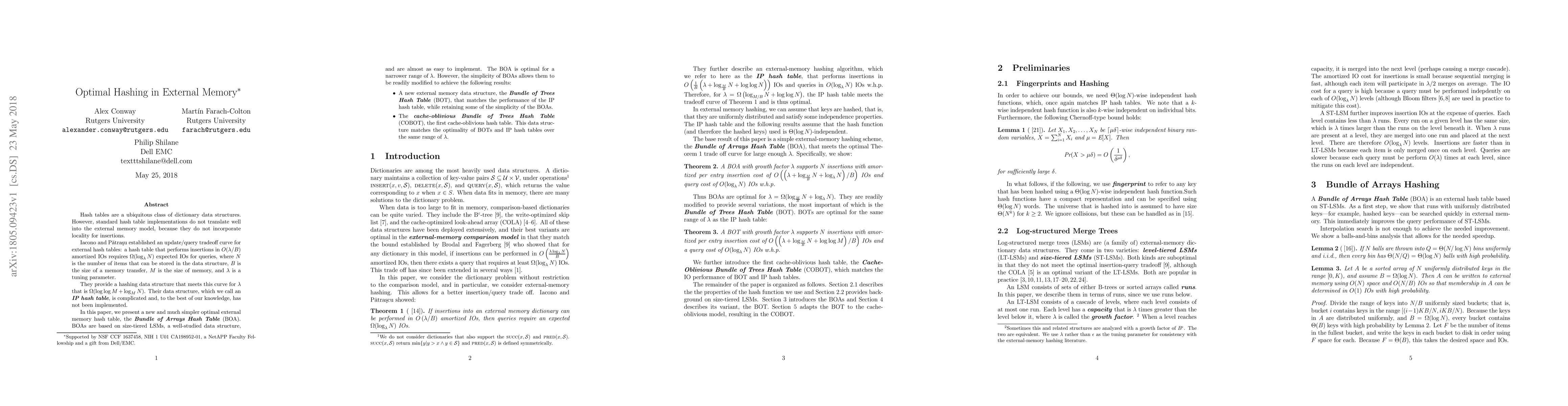 This paper introduces a new and simpler optimal external memory hash table called the Bundle of Arrays Hash Table (BOA), which is based on size-tiered LSMs. It also presents the Bundle of Trees Hash Table (BOT) and the cache-oblivious Bundle of Trees Hash Table (COBOT), both of which achieve optimal performance for a range of parameters while maintaining simplicity.