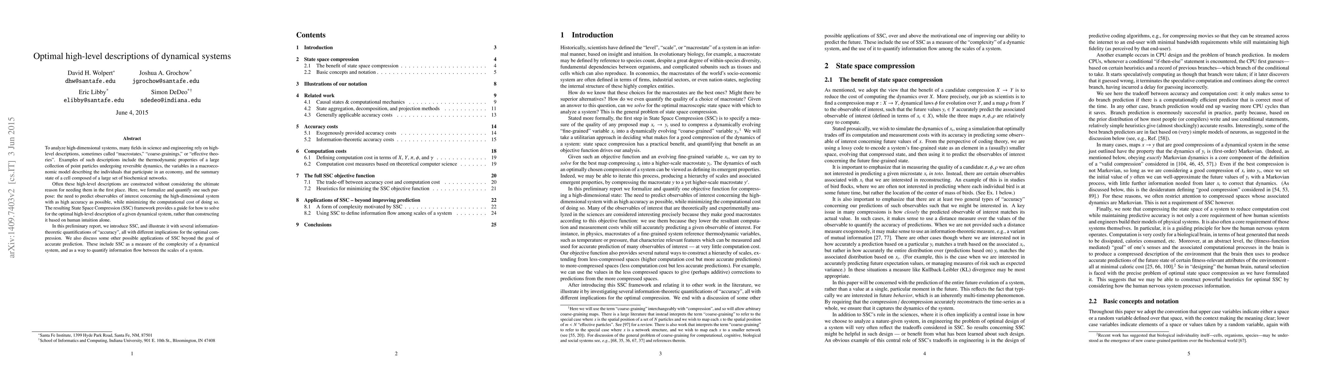 To analyze high-dimensional systems, many fields in science and engineering rely on high-level descriptions, sometimes called "macrostates," "coarse-grainings," or "effective theories". Examples of such descriptions include the thermodynamic properties of a large collection of point particles undergoing reversible dynamics, the variables in a macroeconomic model describing the individuals that participate in an economy, and the summary state of a cell composed of a large set of biochemical networks. Often these high-level descriptions are constructed without considering the ultimate reason for needing them in the first place. Here, we formalize and quantify one such purpose: the need to predict observables of interest concerning the high-dimensional system with as high accuracy as possible, while minimizing the computational cost of doing so. The resulting State Space Compression (SSC) framework provides a guide for how to solve for the {optimal} high-level description of a given dynamical system, rather than constructing it based on human intuition alone. In this preliminary report, we introduce SSC, and illustrate it with several information-theoretic quantifications of "accuracy", all with different implications for the optimal compression. We also discuss some other possible applications of SSC beyond the goal of accurate prediction. These include SSC as a measure of the complexity of a dynamical system, and as a way to quantify information flow between the scales of a system.