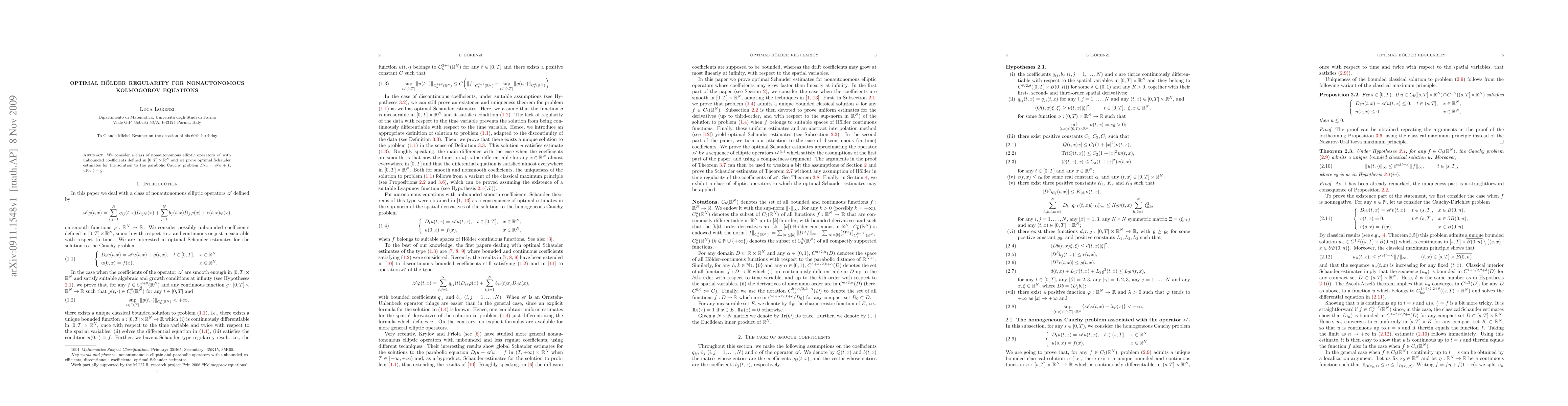 Summary: This paper proves optimal Schauder estimates for solutions to the parabolic Cauchy problem of nonautonomous elliptic operators with unbounded coefficients, establishing the best possible Holder regularity. The results apply to equations defined in $[0,T]\times\R^N$.
