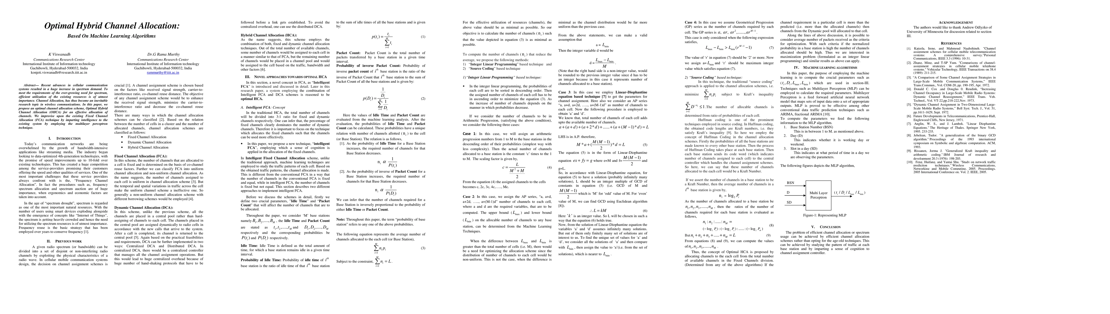 Recent advances in cellular communication systems resulted in a huge increase in spectrum demand. To meet the requirements of the ever-growing need for spectrum, efficient utilization of the existing resources is of utmost importance. Channel Allocation, has thus become an inevitable research topic in wireless communications. In this paper, we propose an optimal channel allocation scheme, Optimal Hybrid Channel Allocation (OHCA) for an effective allocation of channels. We improvise upon the existing Fixed Channel Allocation (FCA) technique by imparting intelligence to the existing system by employing the multilayer perceptron technique.