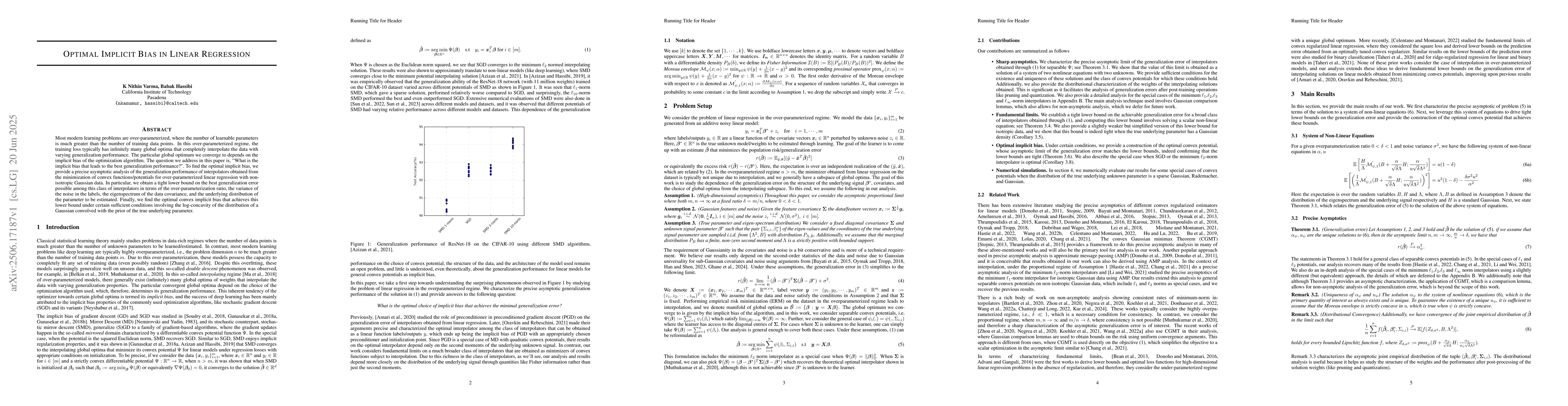 Most modern learning problems are over-parameterized, where the number of learnable parameters is much greater than the number of training data points. In this over-parameterized regime, the training loss typically has infinitely many global optima that completely interpolate the data with varying generalization performance. The particular global optimum we converge to depends on the implicit bias of the optimization algorithm. The question we address in this paper is, ``What is the implicit bias that leads to the best generalization performance?". To find the optimal implicit bias, we provide a precise asymptotic analysis of the generalization performance of interpolators obtained from the minimization of convex functions/potentials for over-parameterized linear regression with non-isotropic Gaussian data. In particular, we obtain a tight lower bound on the best generalization error possible among this class of interpolators in terms of the over-parameterization ratio, the variance of the noise in the labels, the eigenspectrum of the data covariance, and the underlying distribution of the parameter to be estimated. Finally, we find the optimal convex implicit bias that achieves this lower bound under certain sufficient conditions involving the log-concavity of the distribution of a Gaussian convolved with the prior of the true underlying parameter.