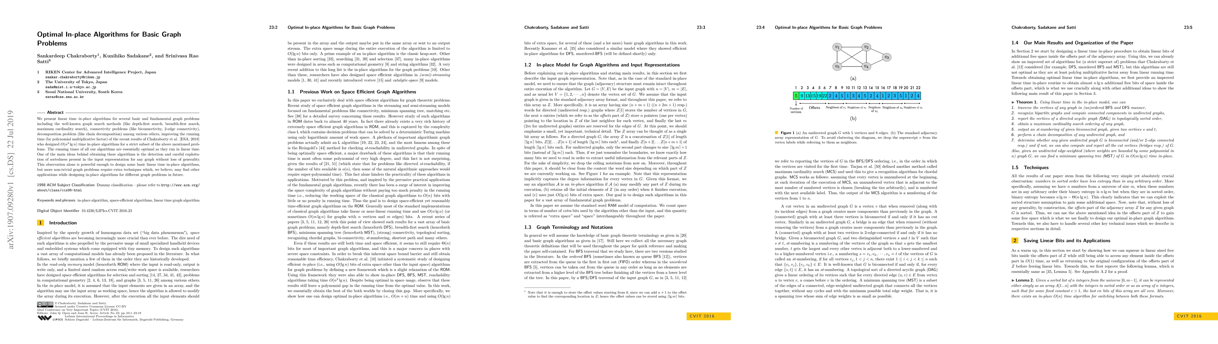 We present linear time {\it in-place} algorithms for several basic and fundamental graph problems including the well-known graph search methods (like depth-first search, breadth-first search, maximum cardinality search), connectivity problems (like biconnectivity, $2$-edge connectivity), decomposition problem (like chain decomposition) among various others, improving the running time (by polynomial multiplicative factor) of the recent results of Chakraborty et al. [ESA, 2018] who designed $O(n^3 \lg n)$ time in-place algorithms for a strict subset of the above mentioned problems. The running times of all our algorithms are essentially optimal as they run in linear time. One of the main ideas behind obtaining these algorithms is the detection and careful exploitation of sortedness present in the input representation for any graph without loss of generality. This observation alone is powerful enough to design some basic linear time in-place algorithms, but more non-trivial graph problems require extra techniques which, we believe, may find other applications while designing in-place algorithms for different graph problems in the future.