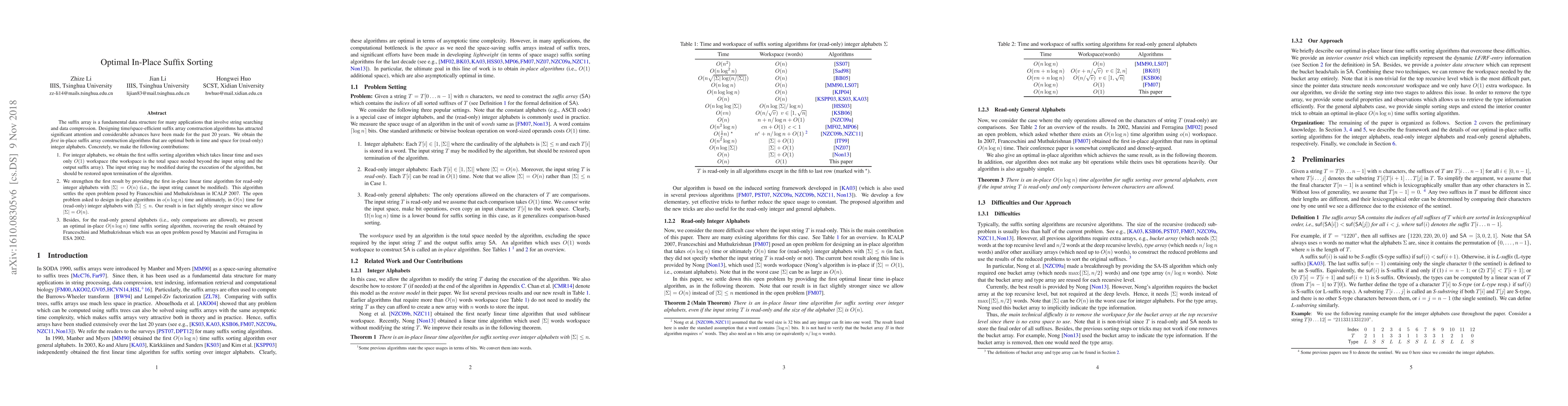 The paper introduces novel in-place suffix sorting techniques, specifically tailored for integer alphabets and general alphabets, optimizing both time and space complexities.