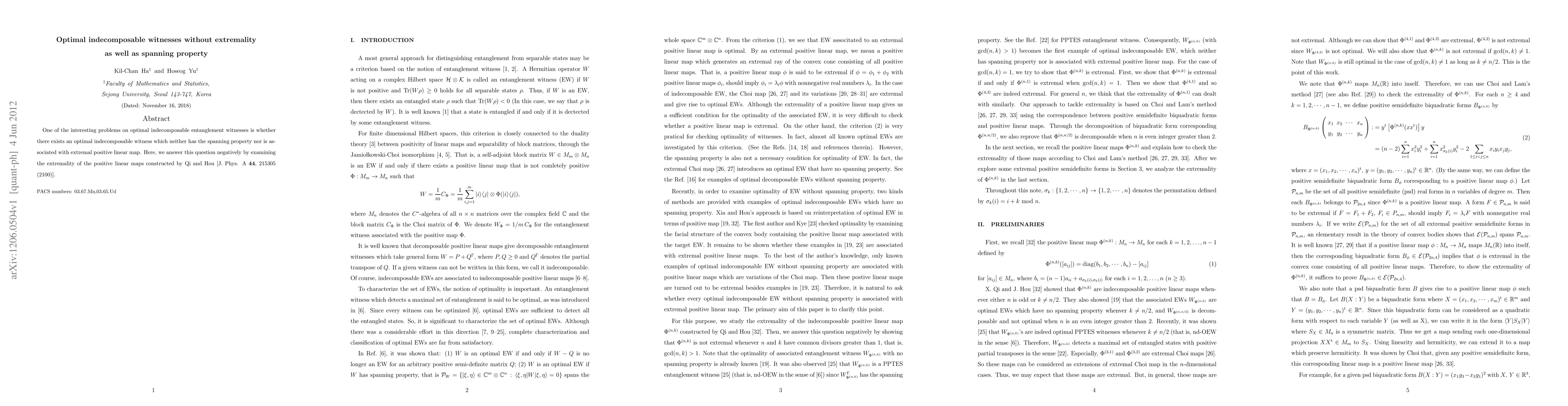 One of the interesting problems on optimal indecomposable entanglement witnesses is whether there exists an optimal indecomposable witness which neither has the spanning property nor is associated with extremal positive linear map. Here, we answer this question negatively by examining the extremality of the positive linear maps constructed by Qi and Hou [J. Phys. A {\bf 44}, 215305 (2100)].