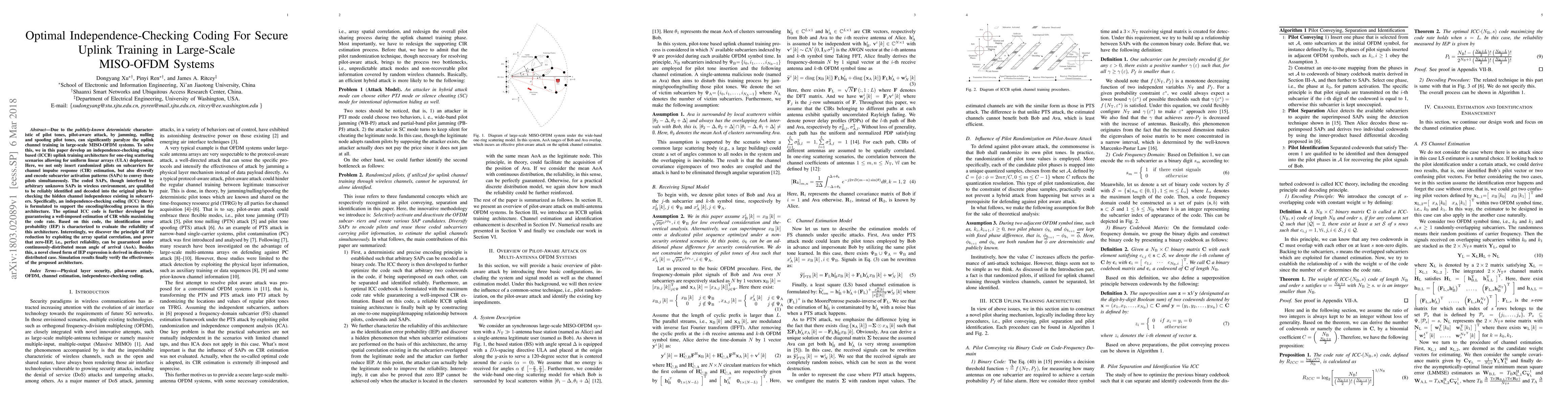 This research proposes an independence-checking coding (ICCB) architecture to secure uplink training in large-scale MISO-OFDM systems, addressing pilot-aware attacks. The method involves randomized pilots, encoded subcarrier activation patterns, and an optimal ICC code for reliable CIR estimation. The study reveals that perfect reliability can be guaranteed under continuously-distributed mean angle of arrival, with a novel closed-form IEP expression for discretely-distributed cases. Simulation results validate the effectiveness of the proposed architecture.
