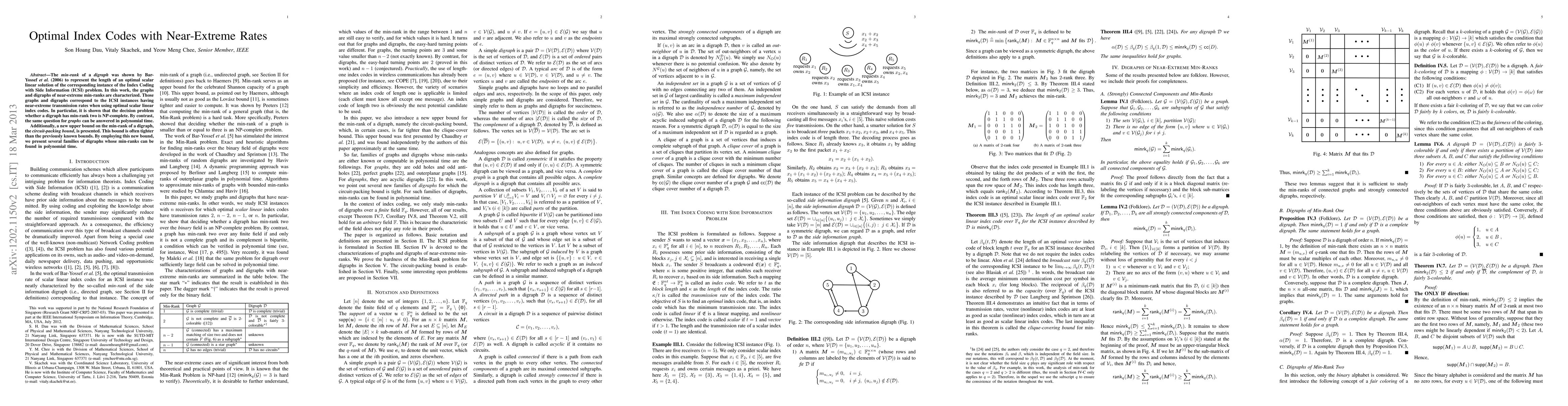 The min-rank of a digraph was shown by Bar-Yossef et al. (2006) to represent the length of an optimal scalar linear solution of the corresponding instance of the Index Coding with Side Information (ICSI) problem. In this work, the graphs and digraphs of near-extreme min-ranks are characterized. Those graphs and digraphs correspond to the ICSI instances having near-extreme transmission rates when using optimal scalar linear index codes. In particular, it is shown that the decision problem whether a digraph has min-rank two is NP-complete. By contrast, the same question for graphs can be answered in polynomial time. Additionally, a new upper bound on the min-rank of a digraph, the circuit-packing bound, is presented. This bound is often tighter than the previously known bounds. By employing this new bound, we present several families of digraphs whose min-ranks can be found in polynomial time.