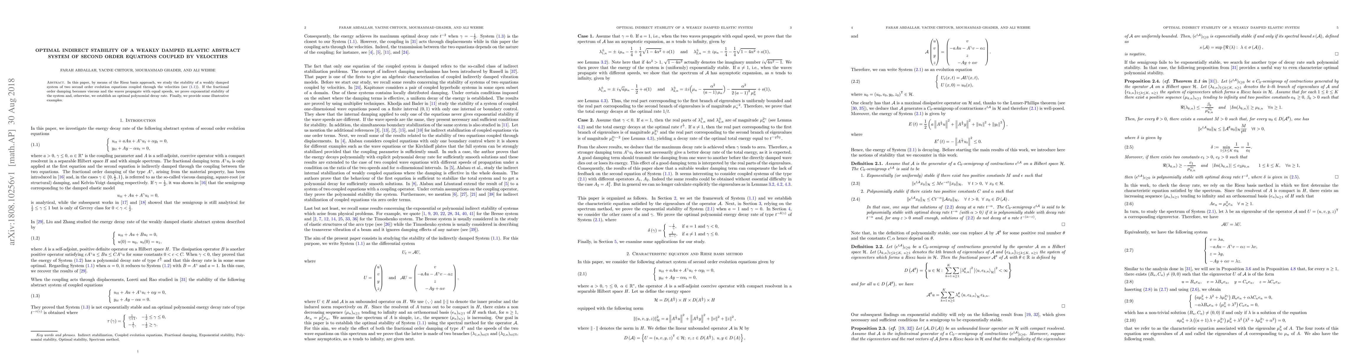 This paper investigates the stability of a weakly damped system of second-order equations coupled through velocities, proving exponential stability under certain conditions and an optimal polynomial decay rate otherwise.