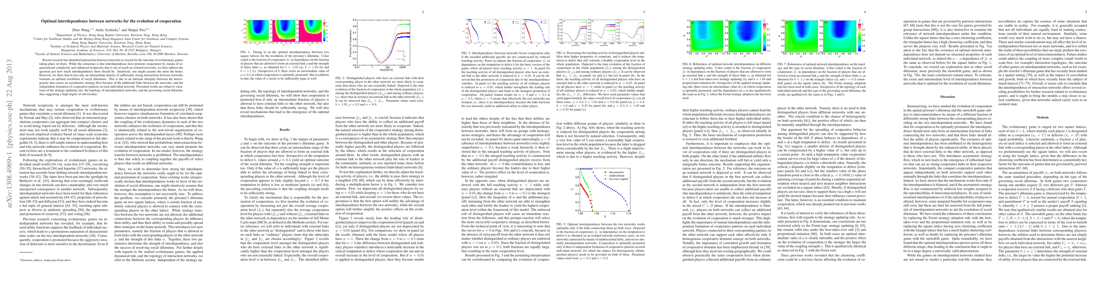Research finds that optimal interdependence between networks for cooperation lies in an intermediate density of strong interactions, balancing complex reciprocity with individual network formation.
