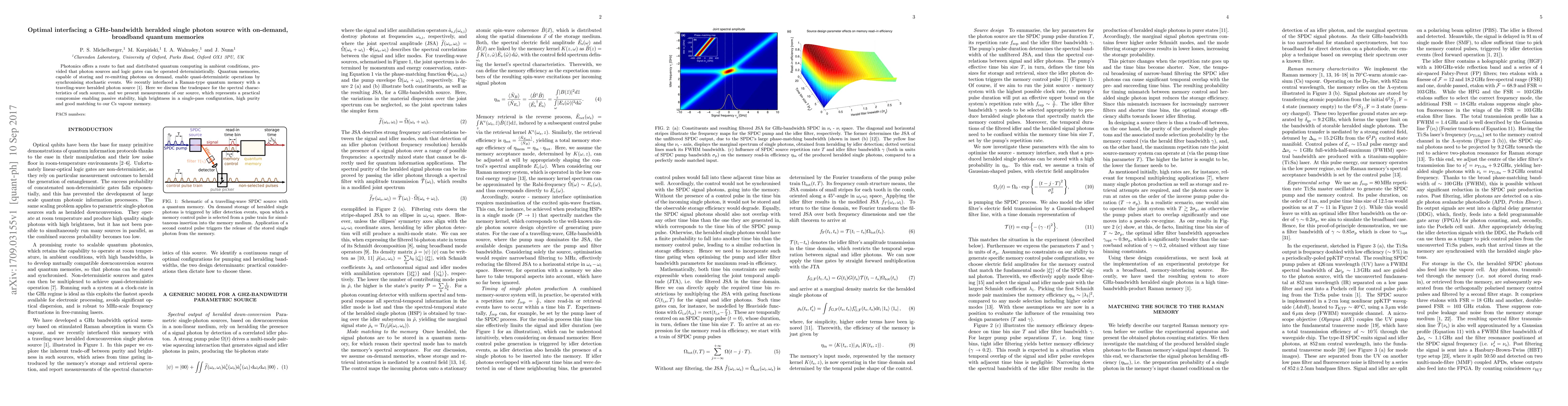 Photonics offers a route to fast and distributed quantum computing in ambient conditions, provided that photon sources and logic gates can be operated deterministically. Quantum memories, capable of storing and re-emitting photons on demand, enable quasi-deterministic operations by synchronising stochastic events. We recently interfaced a Raman-type quantum memory with a travelling-wave heralded photon source. Here we discuss the trade-space for the spectral characteristics of such sources, and we present measurements of our source, which represents a practical compromise enabling passive stability, high brightness in a single-pass configuration, high purity and good matching to our Cs vapour memory.